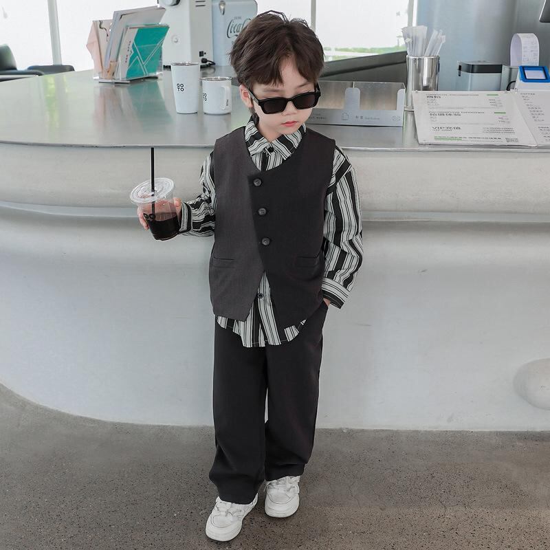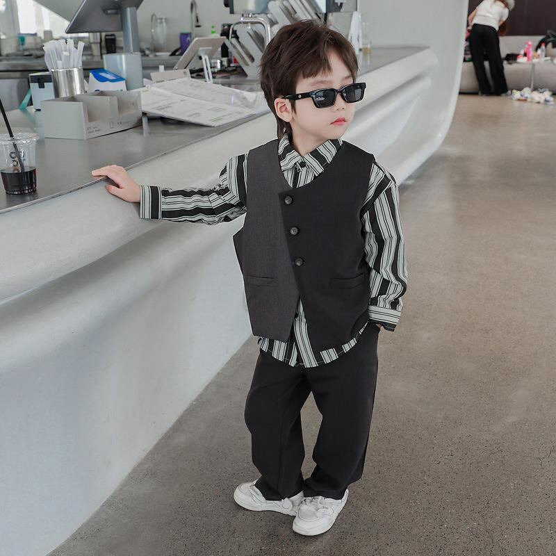 子供用スーツ ベスト 3点セット 春秋 男の子 韓国風 かっこいい カジュアル 上下セット 中大子供服