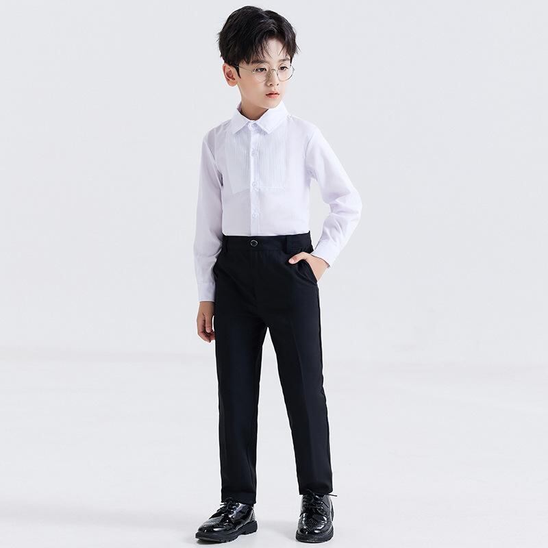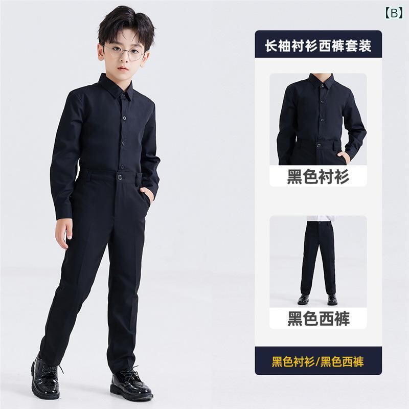 キッズ フォーマル 男の子 長袖 白シャツ 黒パンツ スーツ セットアップ 子供 発表会 演奏会 合唱 舞台 ポケット付き 綿