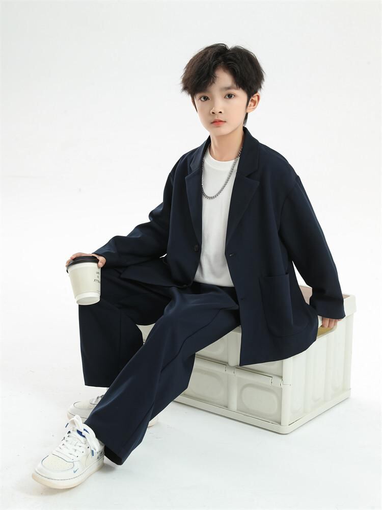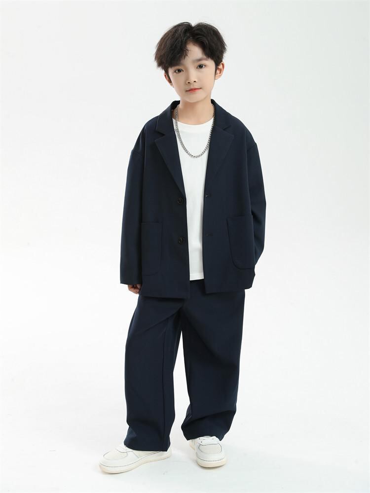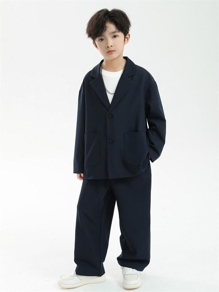 キッズ フォーマル スーツ 男の子 子供用 カジュアル スーツ 2点セット パンツセット 春秋 礼服 発表会 結婚式 卒園式 入学式 紺色