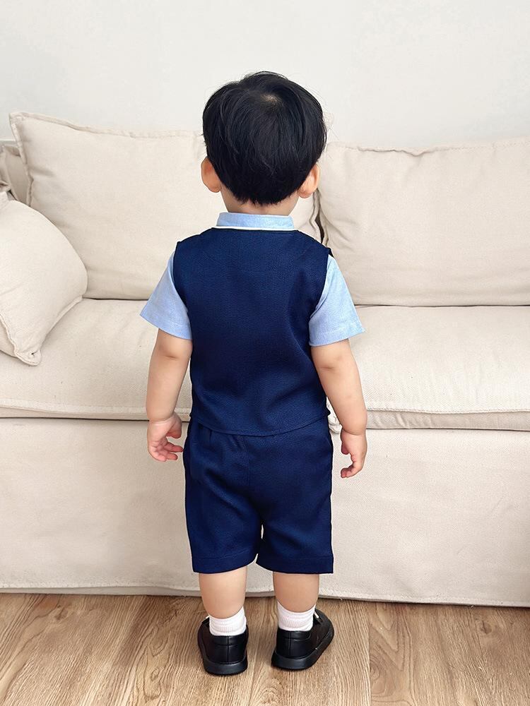 子供用フォーマルウェア 男の子 半袖シャツ ショートパンツ ベスト 3点セット 夏物 子供服 幼児 英国風 チェック柄 結婚式 発表会