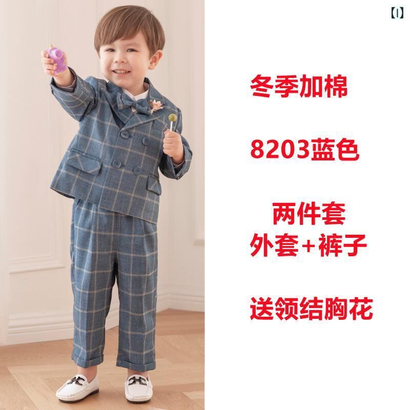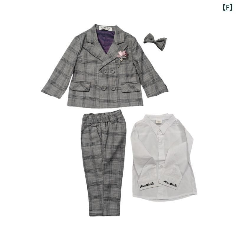 子供用フォーマルスーツ 男の子用 タキシード セットアップ 秋冬 結婚式 発表会 演奏会 誕生日 チェック柄 ジャケット パンツ 上下セット 2点 胸花 蝶ネクタイ付き 80cm 90cm 100cm 110cm 120cm 130cm