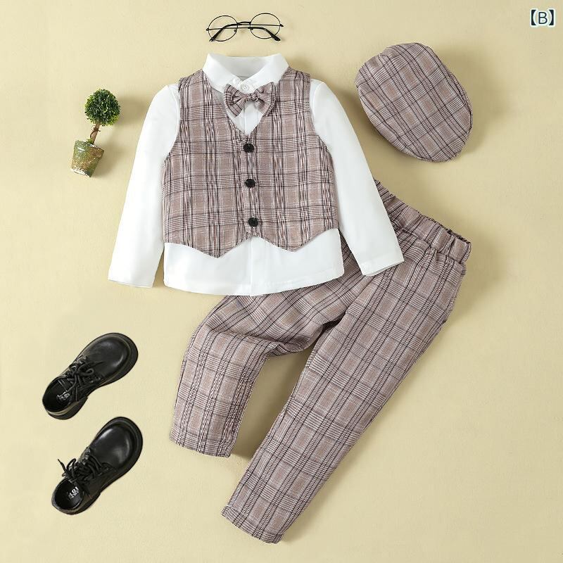 子供用フォーマルスーツ 男の子用ベスト付き タキシード セットアップ 春秋 セレモニー 結婚式 発表会 演奏会 グレー 紺色 赤色 緑色