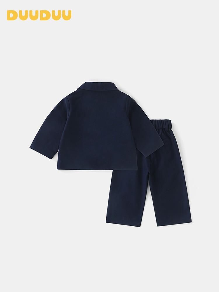 子供用フォーマルスーツ 男の子用 春秋物 2点セット 小学生 幼児 紳士風 ジャケット パンツ セットアップ 学院風 発表会 結婚式 誕生日 お祝い 記念撮影 ネイビー 80 90 100 110 120
