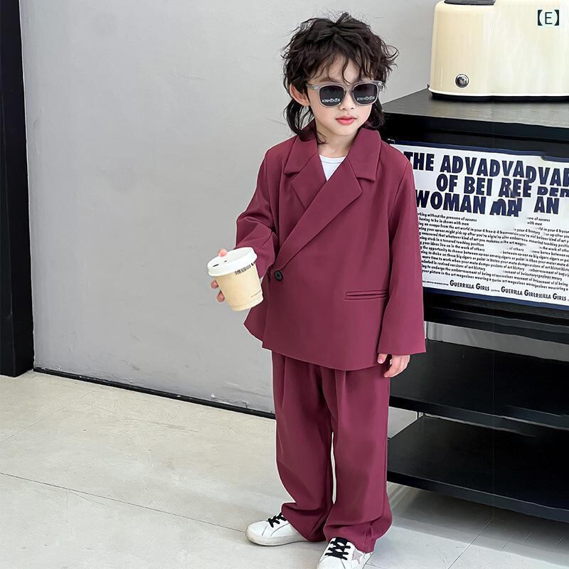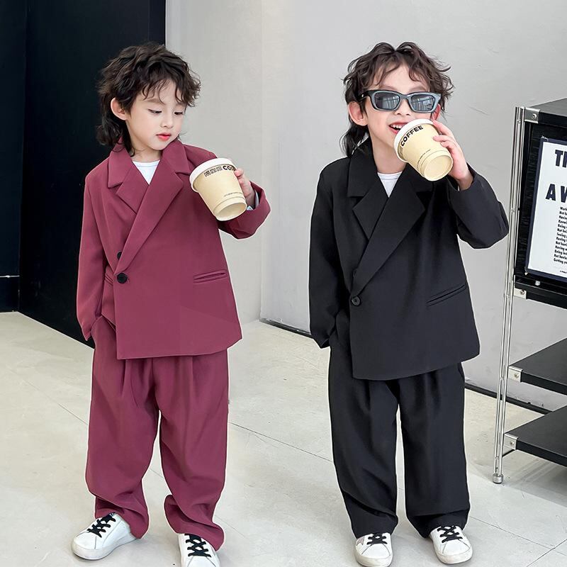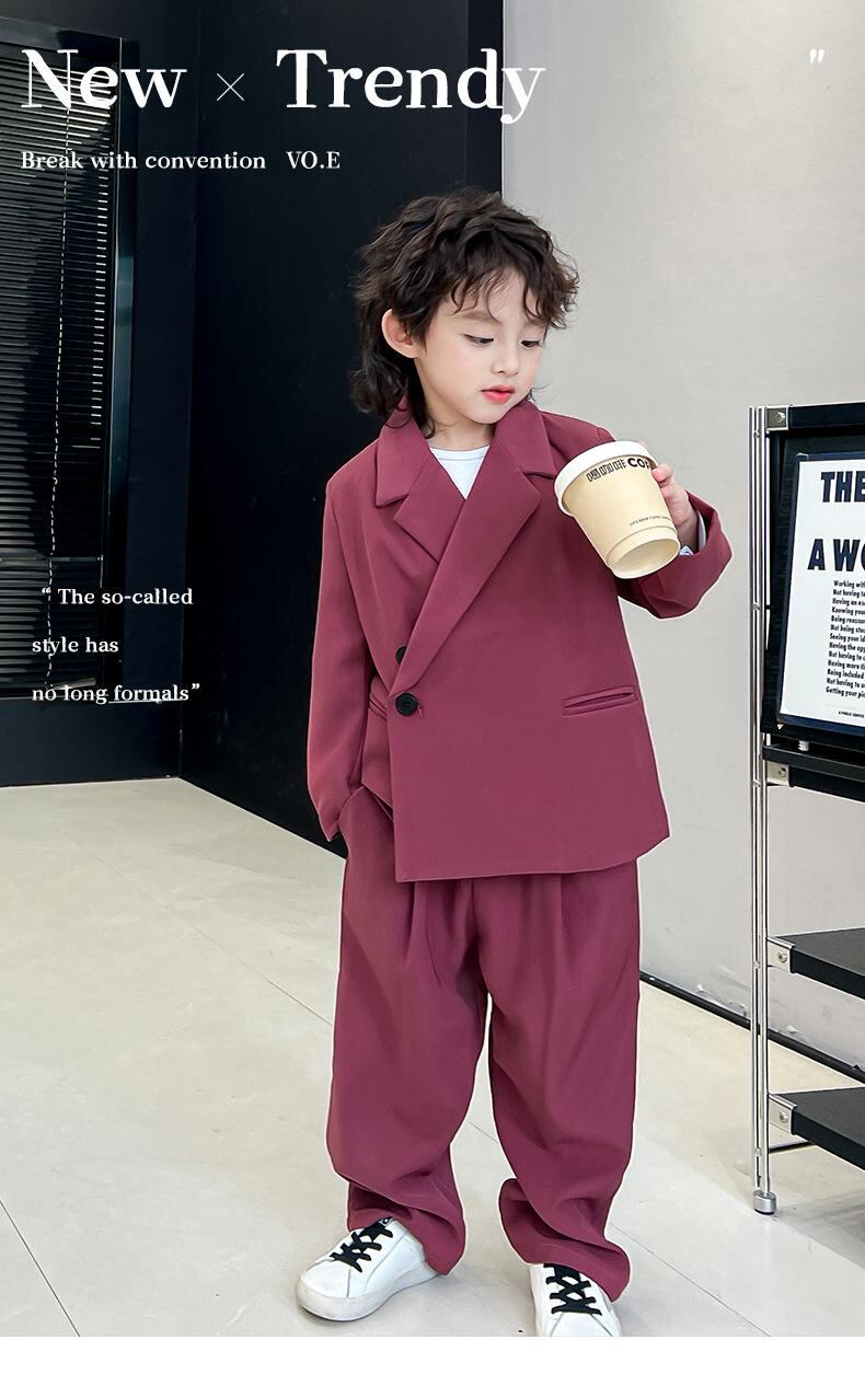 キッズ フォーマル スーツ 男の子 セットアップ 子供服 春秋 発表会 結婚式 演奏会 長袖 ジャケット 長ズボン 上下セット 3歳 4歳 5歳 6歳 7歳 8歳 90cm 100cm 110cm 120cm 130cm 140cm ブラック レッド グ