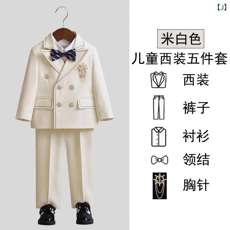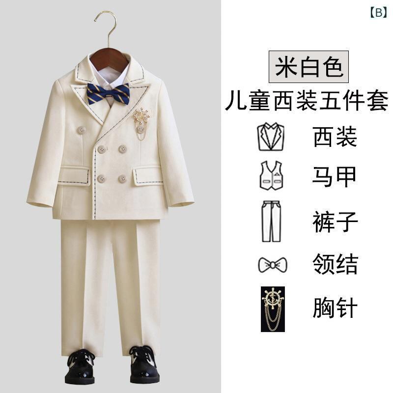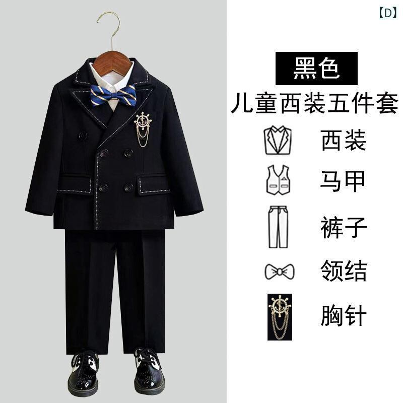 キッズ フォーマルスーツ 男の子 子供用 イングリッシュスタイル 上下セット タキシード 発表会 演奏会 結婚式 紳士服 ジャケット ベスト パンツ シャツ 蝶ネクタイ ブローチ付き ポリエステル素材