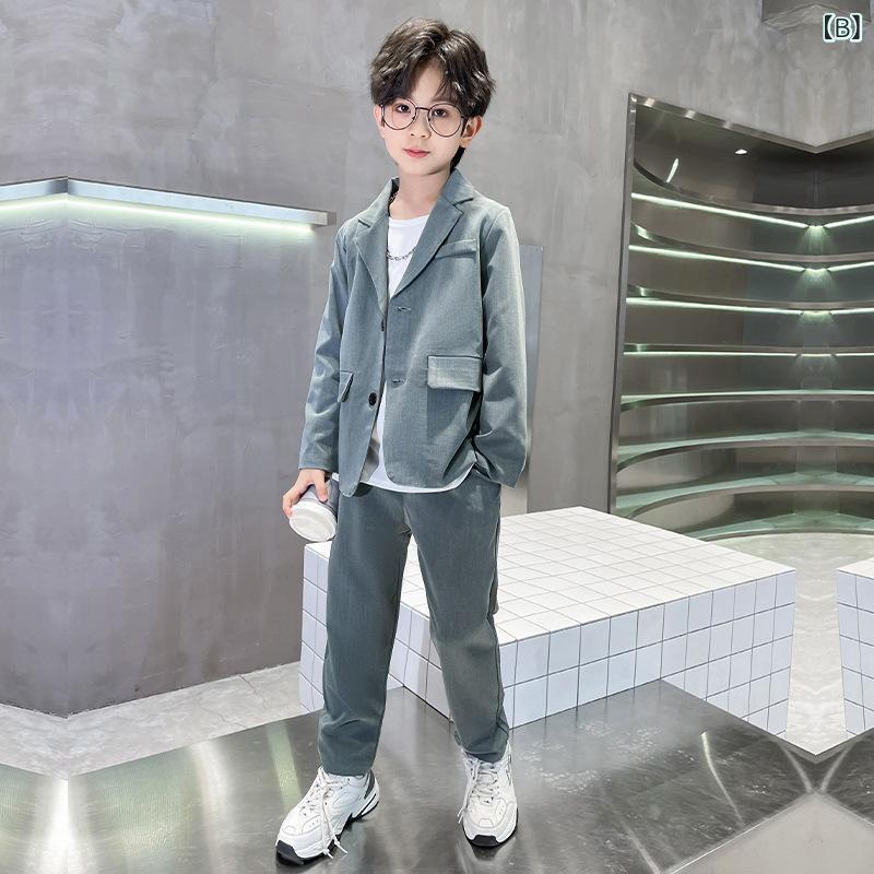 子供用 フォーマルスーツ 男の子 秋物 カジュアル ジャケット パンツ セットアップ 韓国風 イギリス風 司会者 衣装