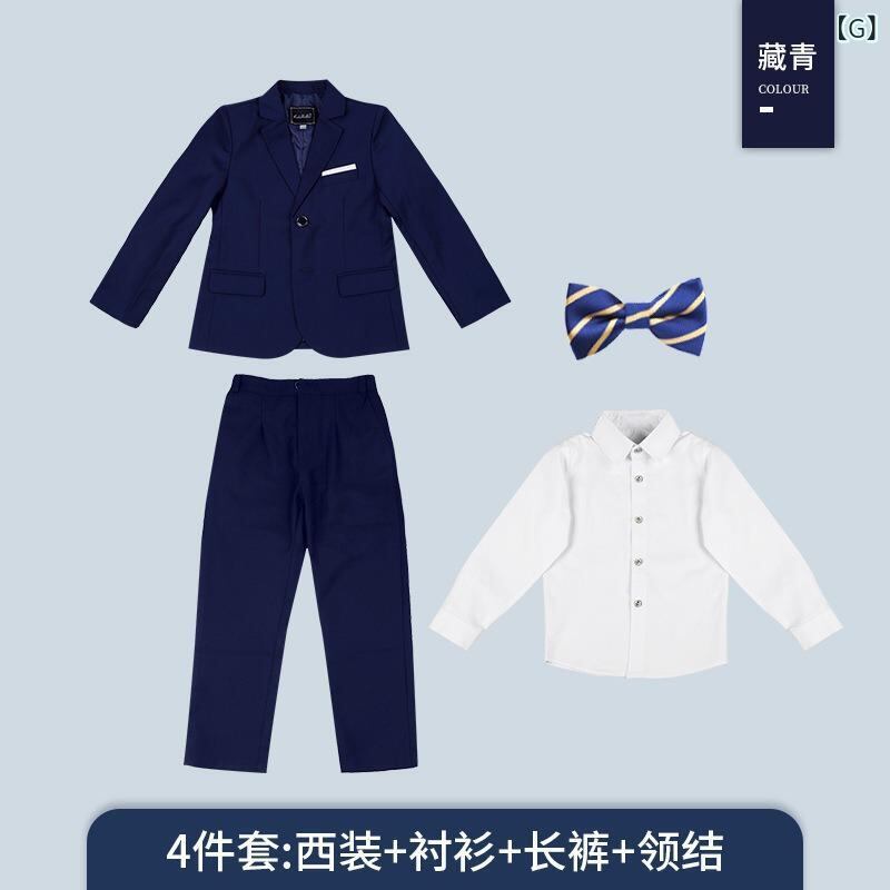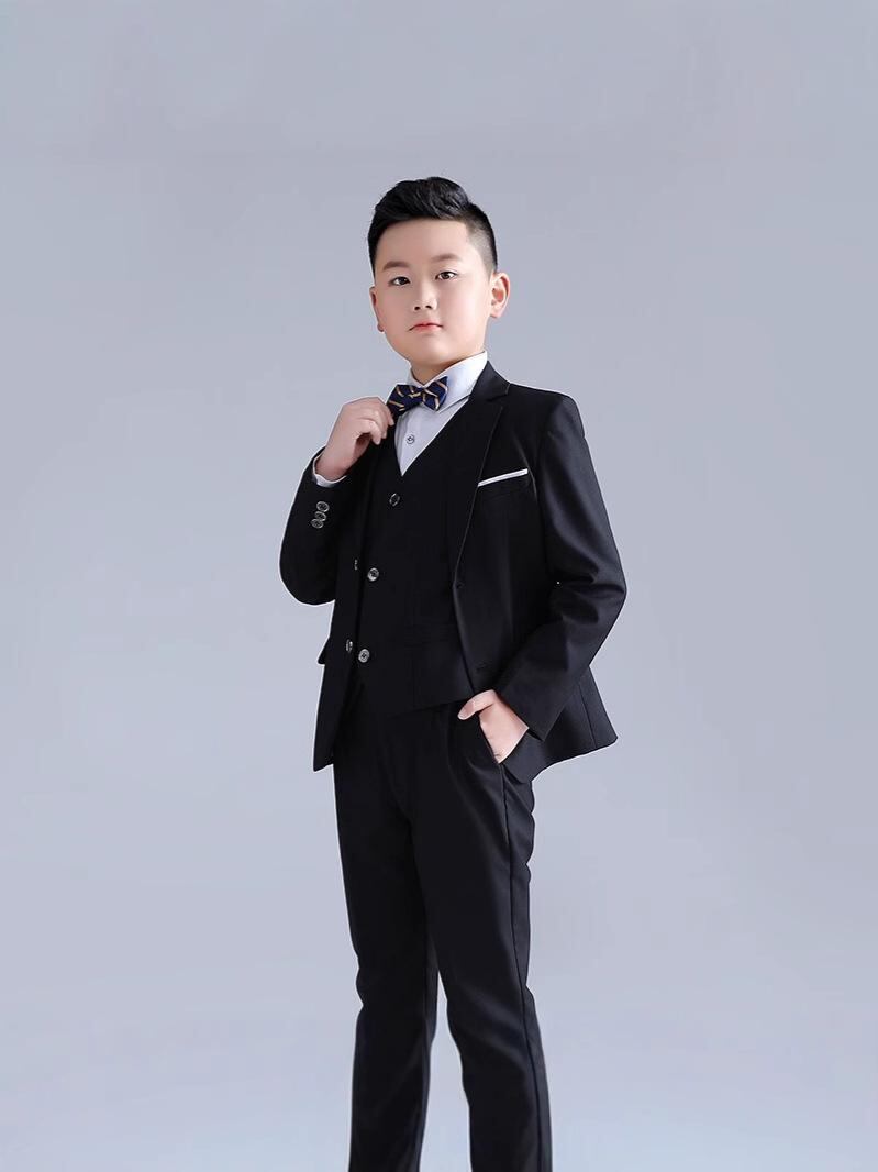 子供用フォーマルスーツ 男の子用タキシード 花婿衣装 ピアノ発表会用 衣装 大きいサイズ 子供服 上下セット ジャケット ベスト シャツ ズボン 結婚式 発表会 七五三 入学式 卒業式 春秋冬 4点セット ブラック 紺色