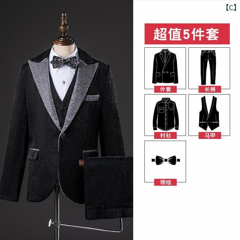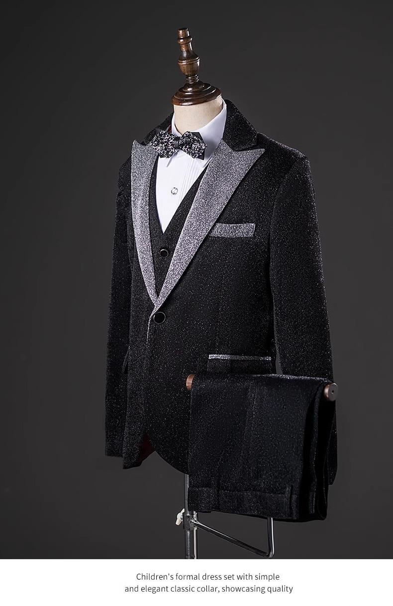 子供用フォーマルウェア 男の子用スーツ ジャケット パンツ 蝶ネクタイ ベスト付き ピアノ発表会 演奏会 結婚式 入学式 卒業式 七五三 発表会 舞台衣装 キッズスーツ 上下セット 子供服 英国風 ブラック ポリエステル