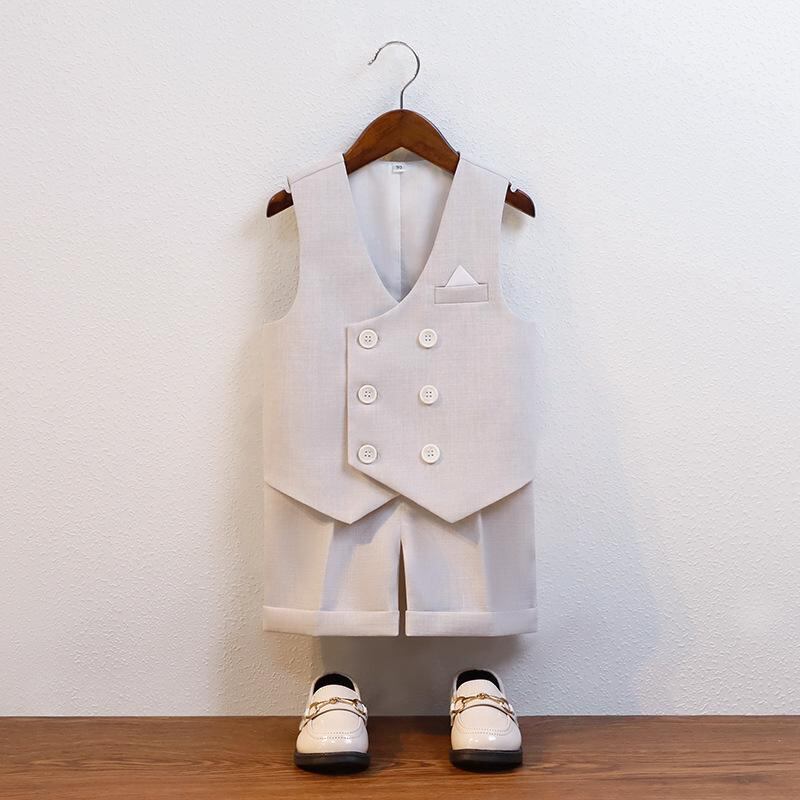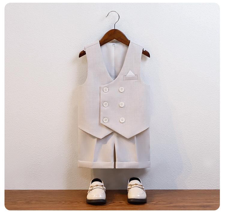キッズ フォーマル スーツ 半袖 シャツ ベスト ショートパンツ 4点セット 子供 発表会 演奏会 ピアノ発表会 結婚式 卒園式 入学式 グレー ブルー 80 90 100 110 120 130 140 150cm