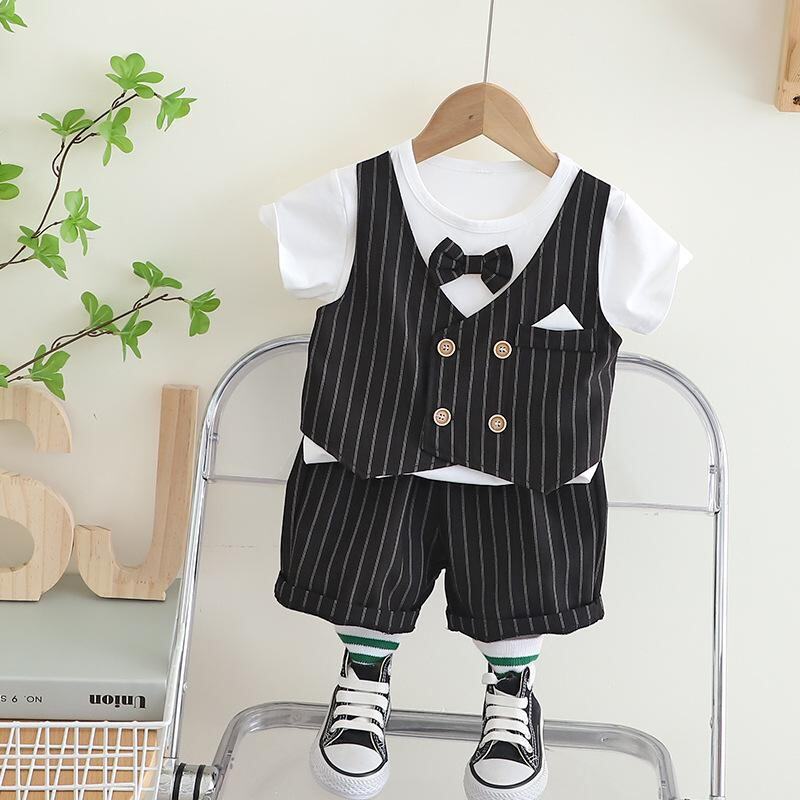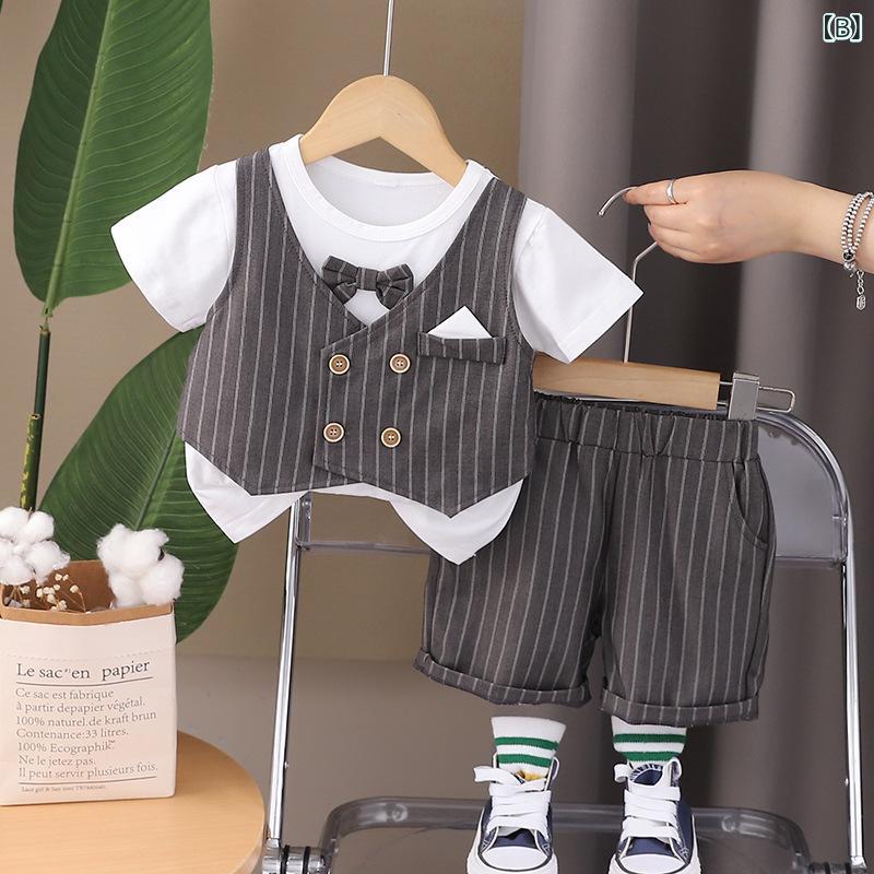 子供用スーツ 半袖シャツ & パンツ 上下セット 夏服 フォーマル 男の子 ベビー 幼児 結婚式 発表会 80 90 100 110 120cm 綿95% かわいい おしゃれ