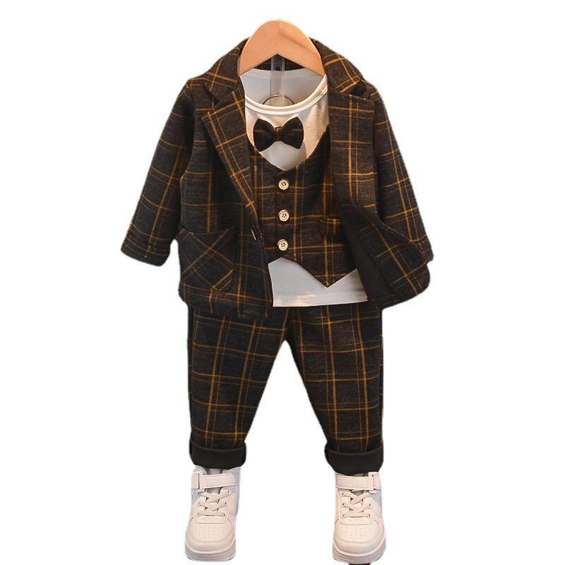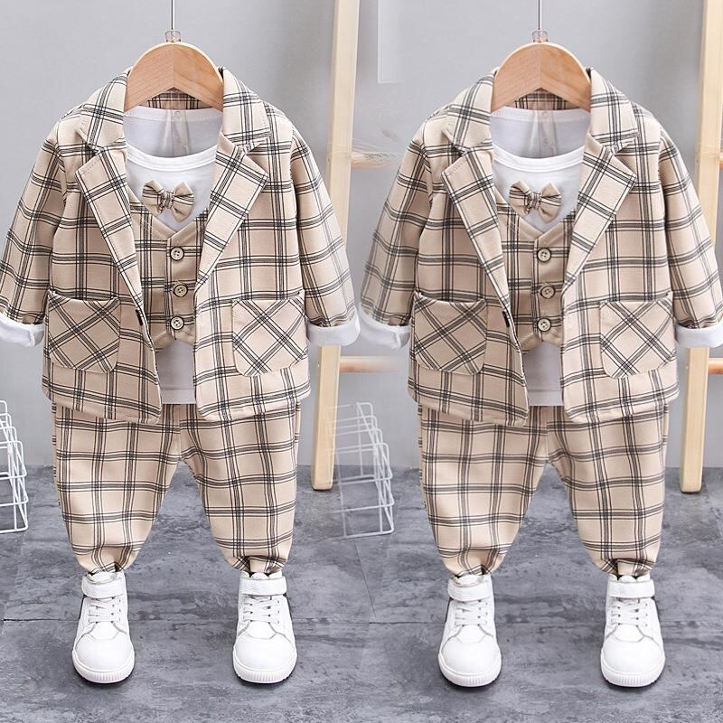 子供用フォーマルスーツ 3点セット(ジャケット パンツ)男の子 春秋 英伦風 ストライプ柄 1歳 2歳 3歳 4歳 5歳 長袖 ズボン