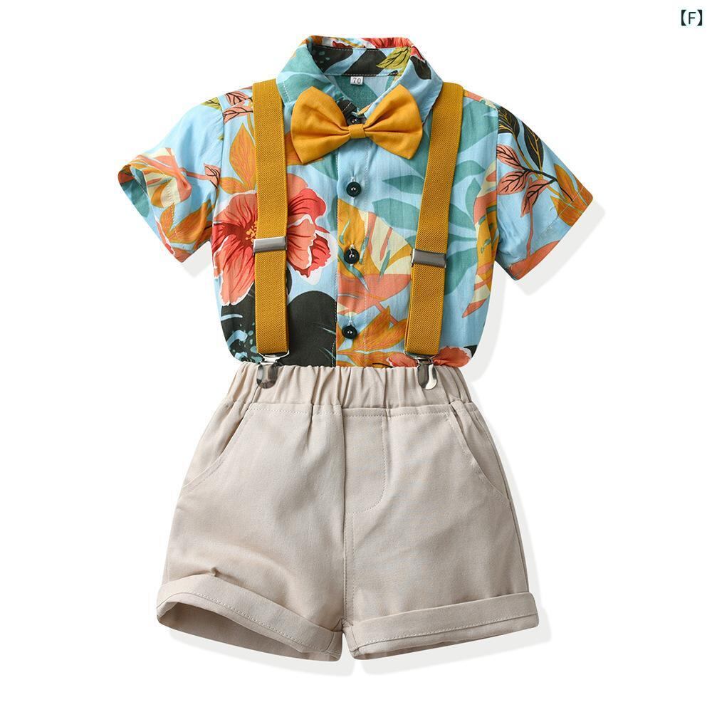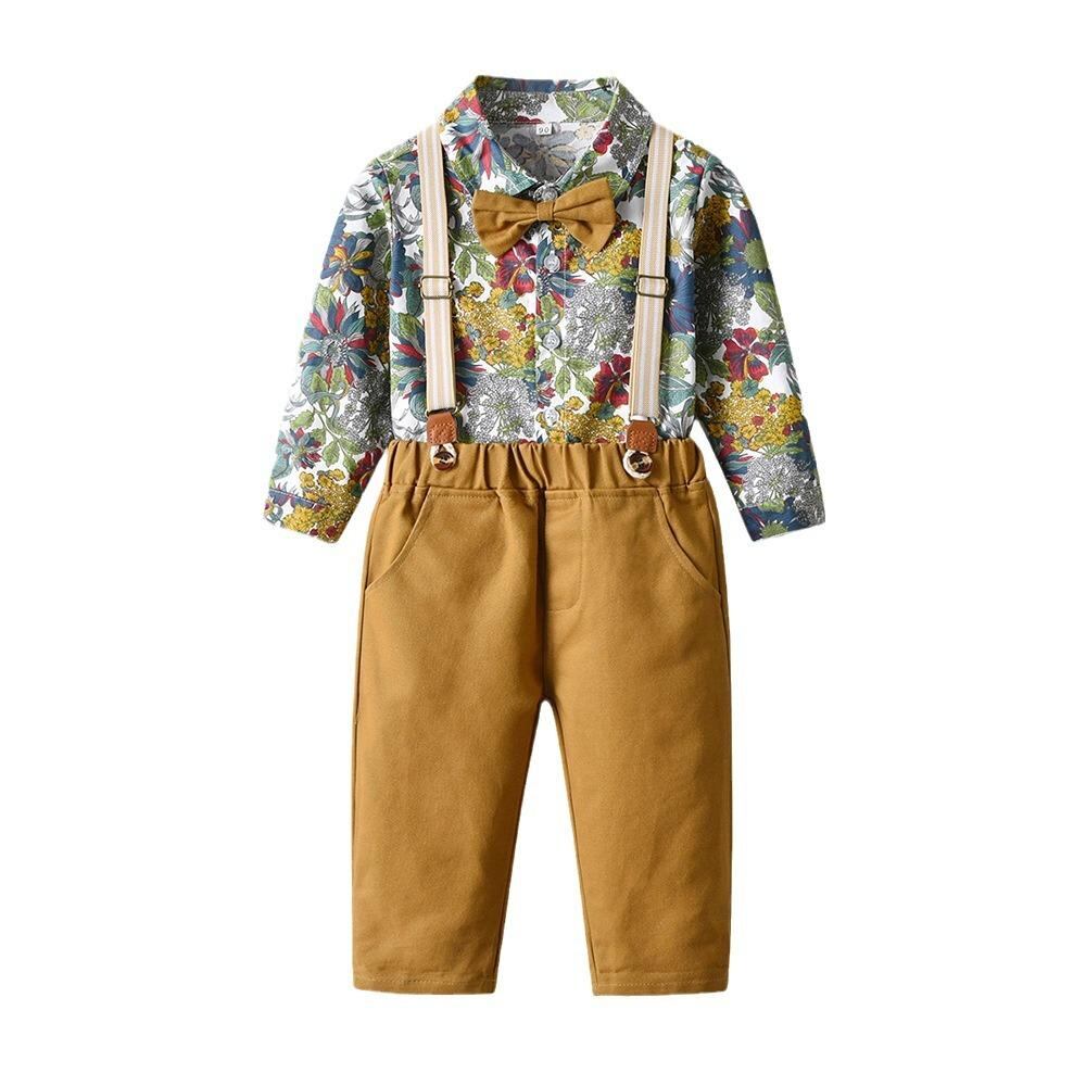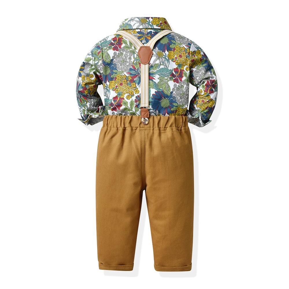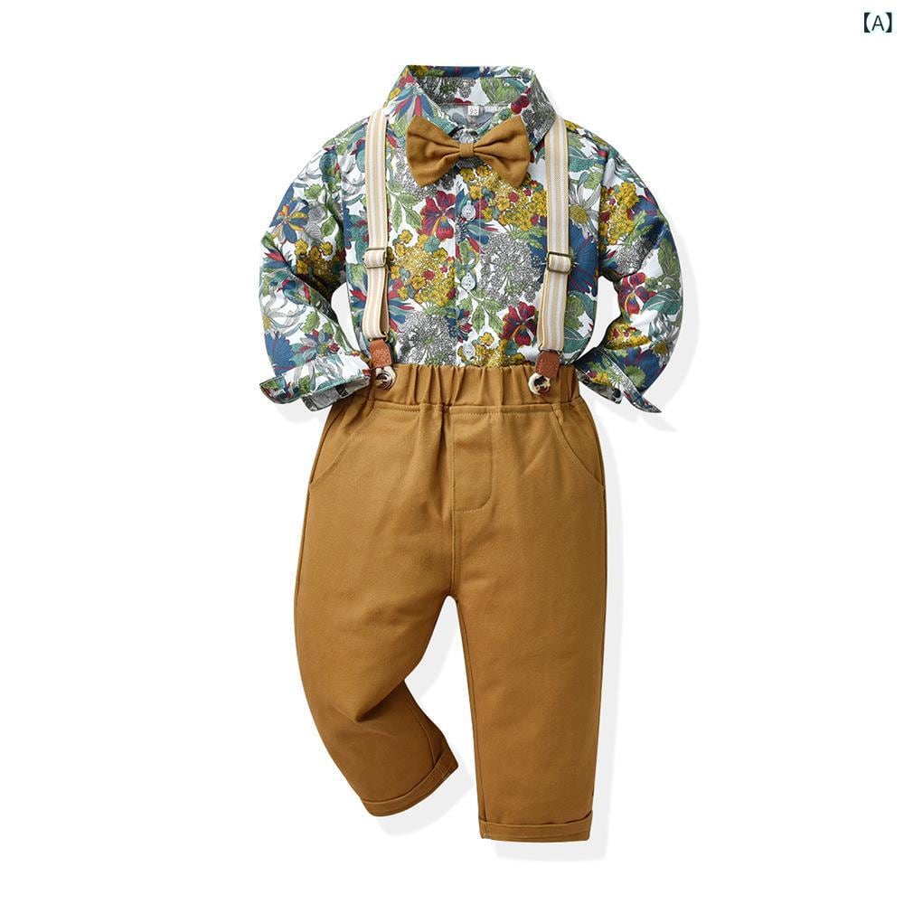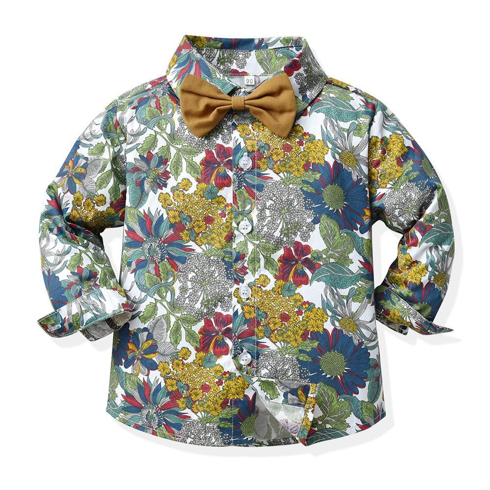 子供用フォーマルウェア 男の子用花柄シャツセットアップ 春秋 1歳 誕生日 結婚式 発表会 ビーチスタイル 子供服 上下セット 長袖シャツ ロングパンツ かわいい おしゃれ 80 90 100 110 120 130 140