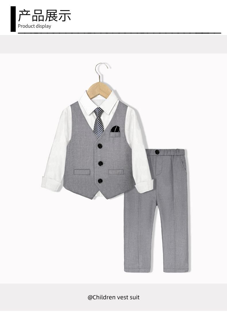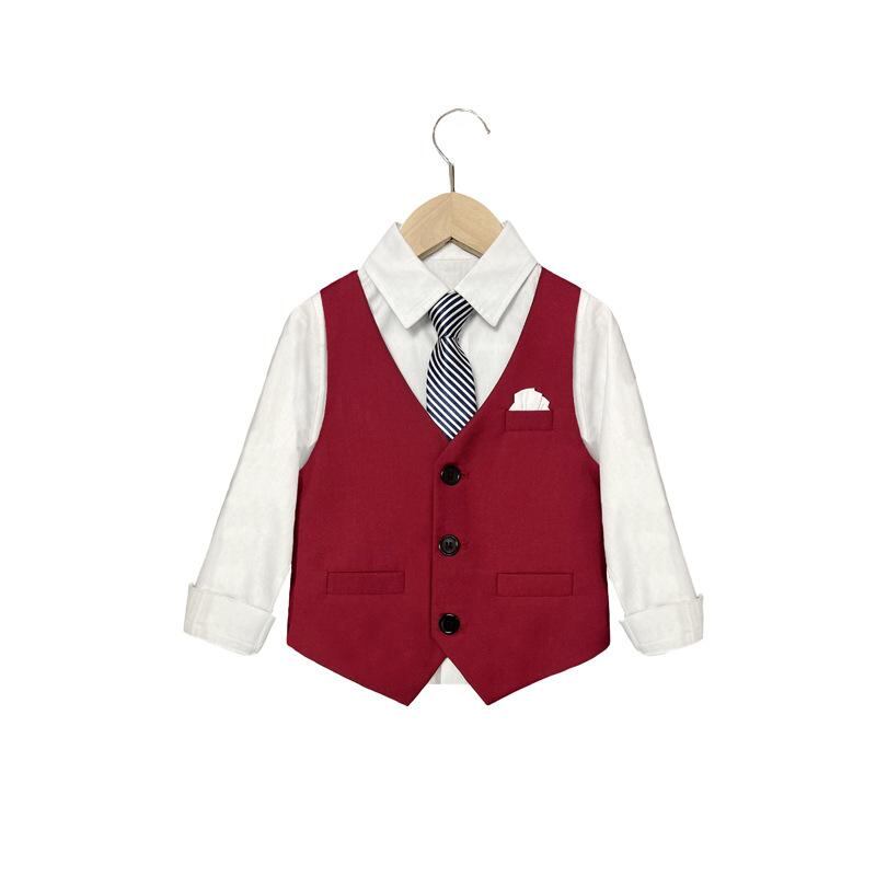 子供用フォーマルスーツ 男の子 大童 結婚式 誕生日 英国風 子供服 発表会 演奏会 ベスト パンツ 長袖シャツ 蝶ネクタイ付き 赤 グレー 90 100 110 120 130 140 150 160 170cm ポリエステル 綿混紡 春夏秋冬