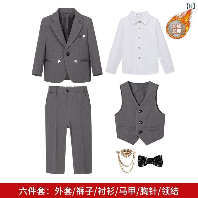 子供用 フォーマルスーツ 男の子 3点セット 5点セット 6点セット キッズ ジャケット ベスト パンツ 長袖シャツ 蝶ネクタイ ブローチ付き 子供スーツ 春秋冬 発表会 結婚式 卒園式 入学式 グレー 黒 ベージュ