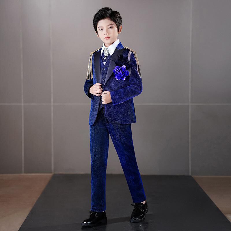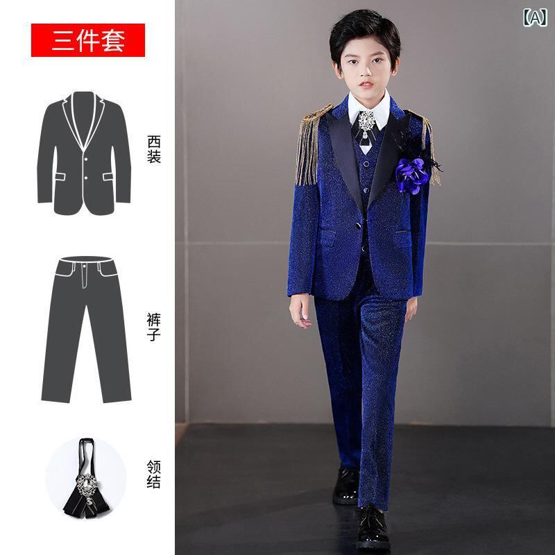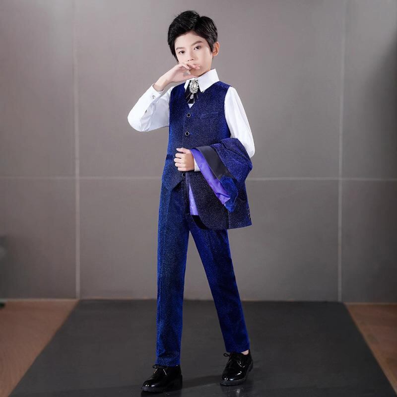 子供用フォーマルスーツ 男の子用タキシード 燕尾服 ピアノ発表会 演奏会 ステージ衣装 結婚式 パーティー 4点セット(ジャケット、パンツ、シャツ、蝶ネクタイ) 七五三 入学式 卒業式 120 130 140 150 160 170cm