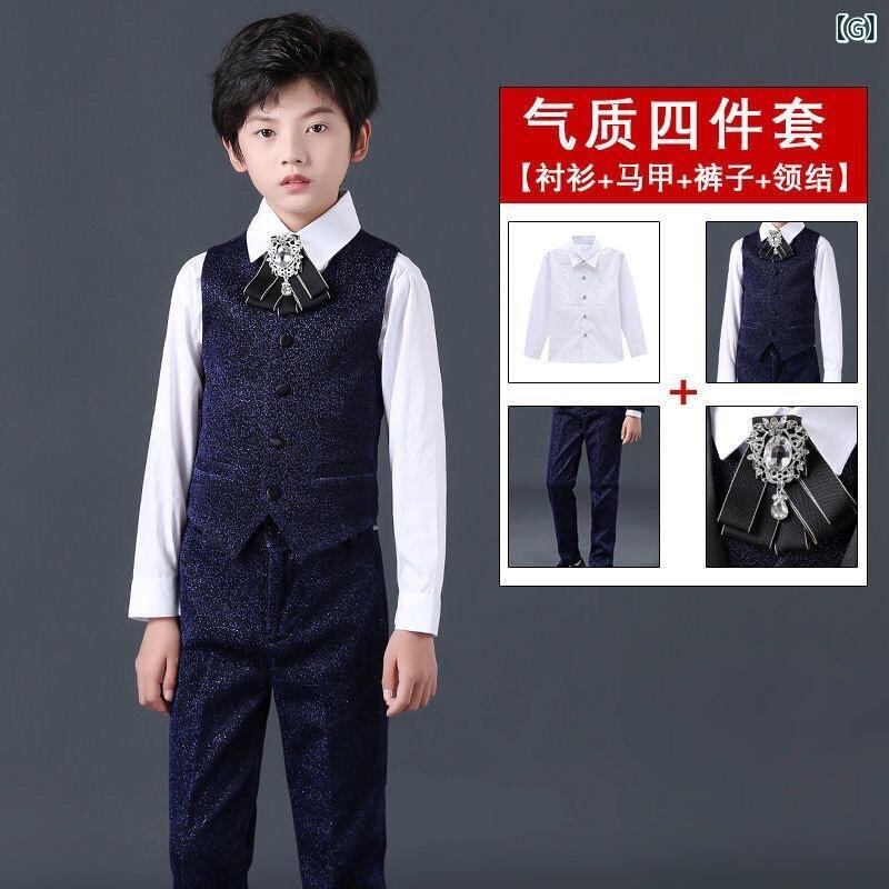 子供用フォーマルスーツ 男の子 立襟 ジャケット ベスト パンツ 蝶ネクタイ付き 結婚式 発表会 演奏会 入学式 卒業式 春秋冬 上下セット 正装 110cm 120cm 130cm 140cm 150cm 160cm 170cm