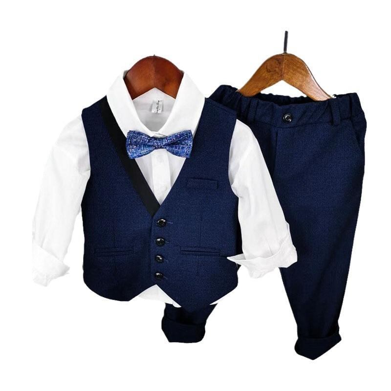 子供用スーツ フォーマル 3点セット(ジャケット パンツ シャツ)韓国風 春秋 男の子 セレモニー 結婚式 発表会 演奏会 藏青 紫红