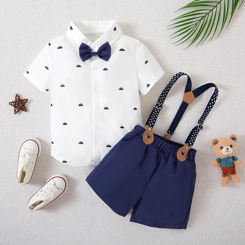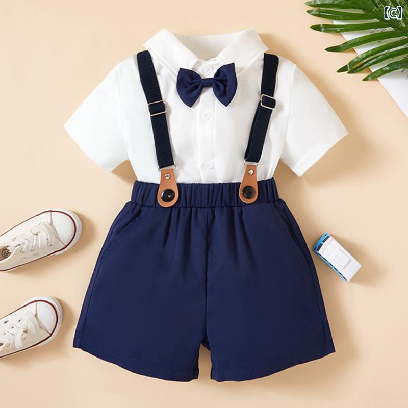 子供用フォーマルウェア 半袖シャツ ショーツ セットアップ 男性用 夏物 ベビー服 1歳 誕生日 セレモニー 英国風 ブルマ付き ポリエステル
