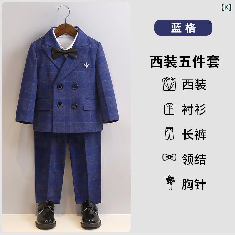 子供用フォーマルスーツ 男の子 格子柄 ジャケット ベスト パンツ 蝶ネクタイ ブローチ付き 5点セット 春秋冬 入園式 卒園式 結婚式 発表会 演奏会 舞台衣装 | Kneebaファッションショップ