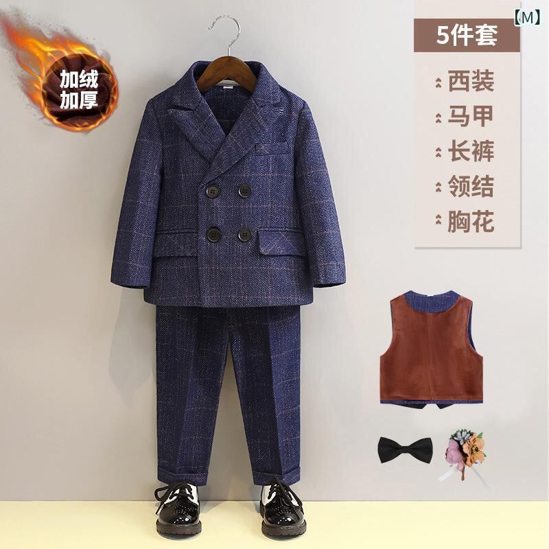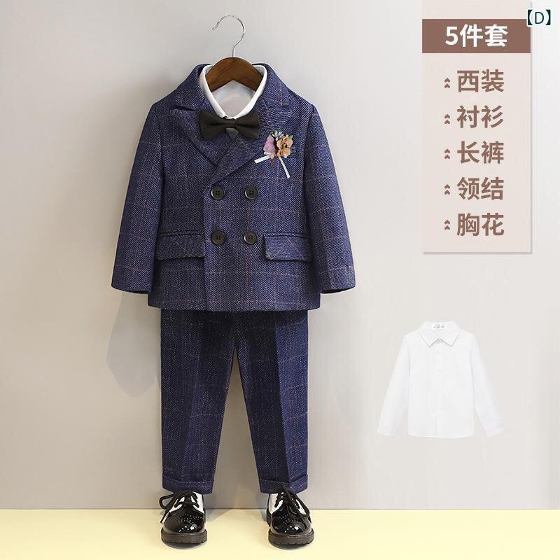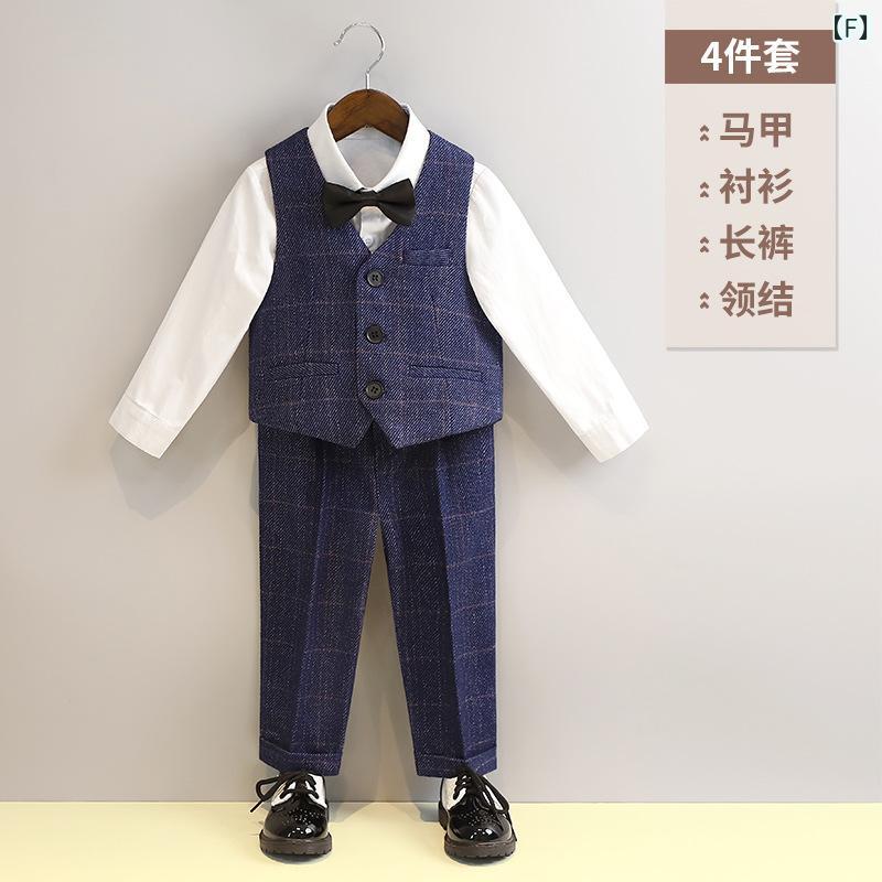子供用 フォーマル スーツ セットアップ 格子柄 男の子 花婿衣装 結婚式 発表会 舞台衣装 演奏会 紳士風 ジャケット ベスト パンツ 長袖シャツ 蝶ネクタイ ブローチ付き 入園式 卒園式 入学式 卒業式 七五三 春秋冬