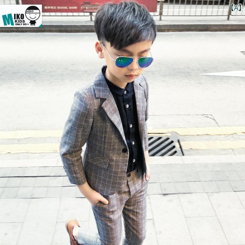 子供用フォーマルスーツ 格子柄 男の子用スーツ 上下セット 子供スーツ 英国風 入園式 卒園式 結婚式 発表会 グレー 紺色 長袖シャツ付き
