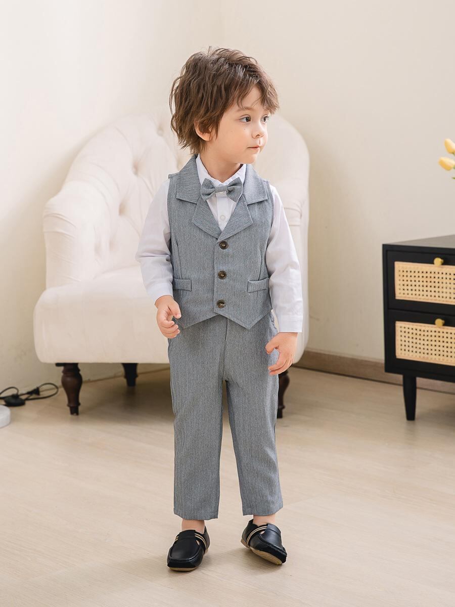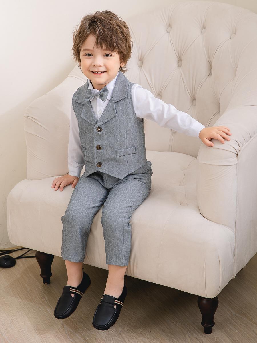 キッズ フォーマルスーツ 男の子 子供服 春秋 セットアップ イングリッシュスタイル 結婚式 パーティー 紳士服 グレー 紺色 ピンク グリーン