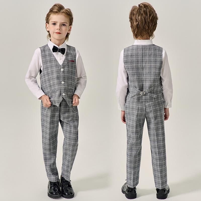 子供用フォーマルスーツ 男の子 春秋 結婚式 発表会 ピアノ発表会 スーツ セットアップ 子供 キッズ Vネック 発表会 演奏会 格子柄 伸縮性 ポリエステル