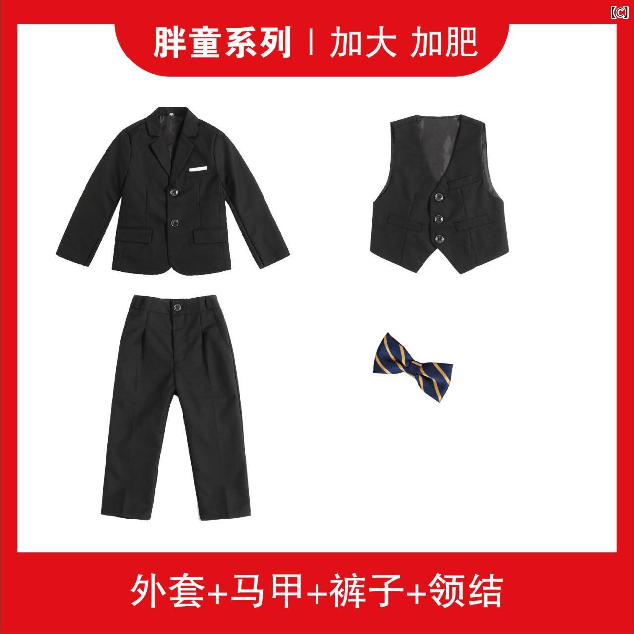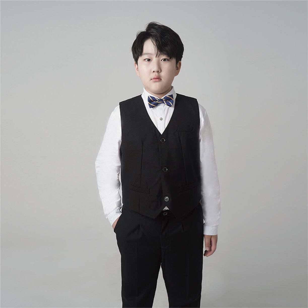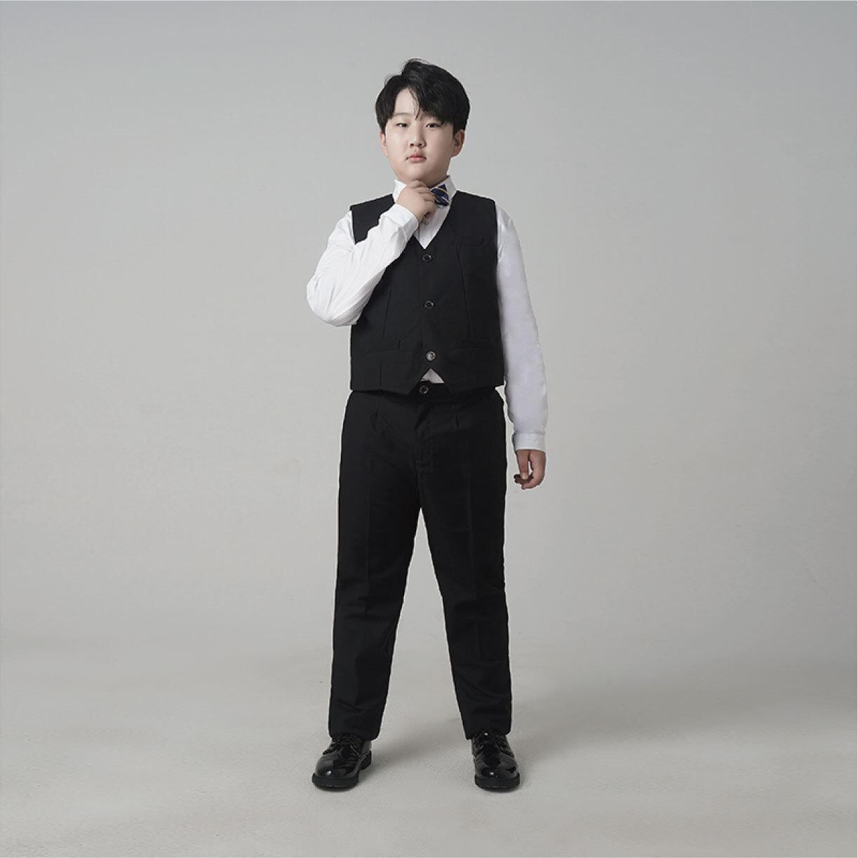 子供服 フォーマルスーツ 男の子 ジャケット ベスト パンツ シャツ 蝶ネクタイ 5点セット 発表会 演奏会 結婚式 大サイズ ゆったりサイズ ポリエステル
