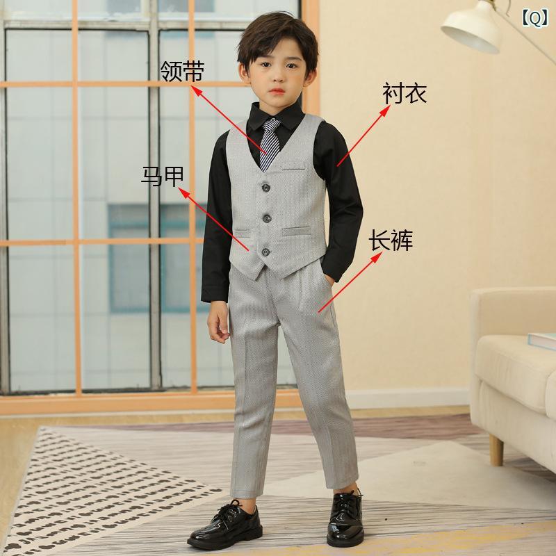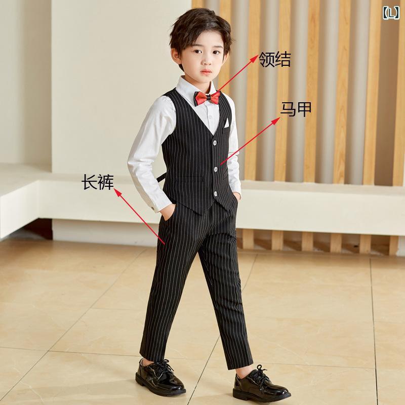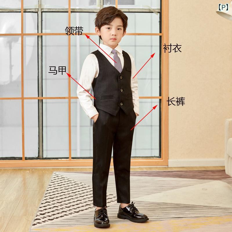 子供用フォーマルスーツ 男の子用ベスト付きタキシード セットアップ 長袖シャツ 長ズボン 蝶ネクタイ付き 入園式 卒園式 結婚式 発表会 演奏会