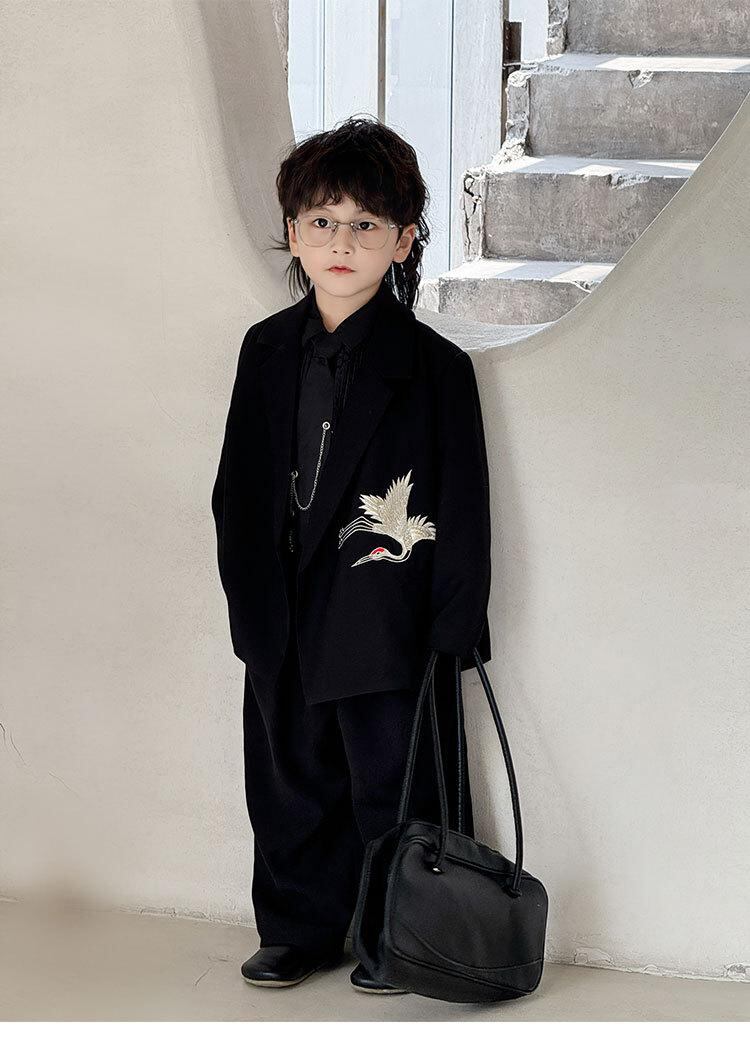 子供用スーツ ジャケット&パンツ 春秋 男の子 フォーマル 鶴刺繍 発表会 結婚式 卒園式 入学式