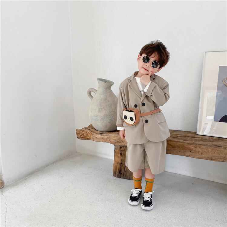 キッズ フォーマル スーツ 半袖シャツ ハーフパンツ 上下セット 2点セット 男の子 子供 発表会 結婚式 グレー ベージュ ポリエステル