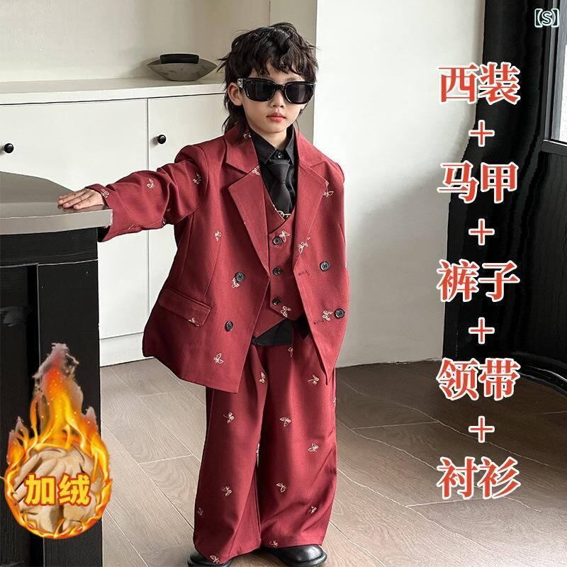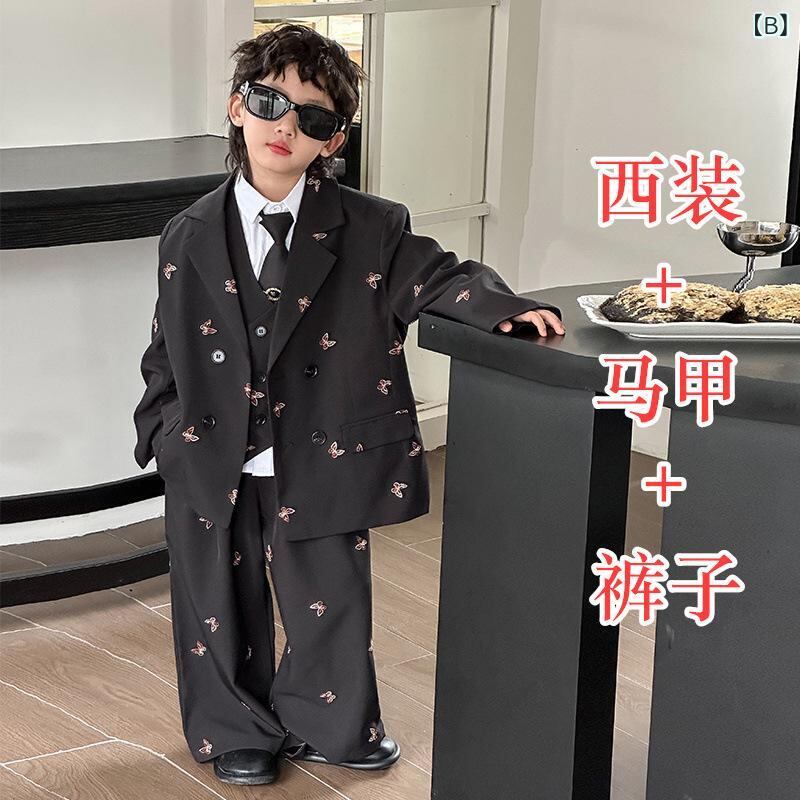 子供用スーツ 男の子 フォーマルスーツ 3点セット(ジャケット ベスト パンツ)キッズ 春秋 粘纤 灰色 蝶ネクタイ付き 入園式 卒園式 結婚式 発表会