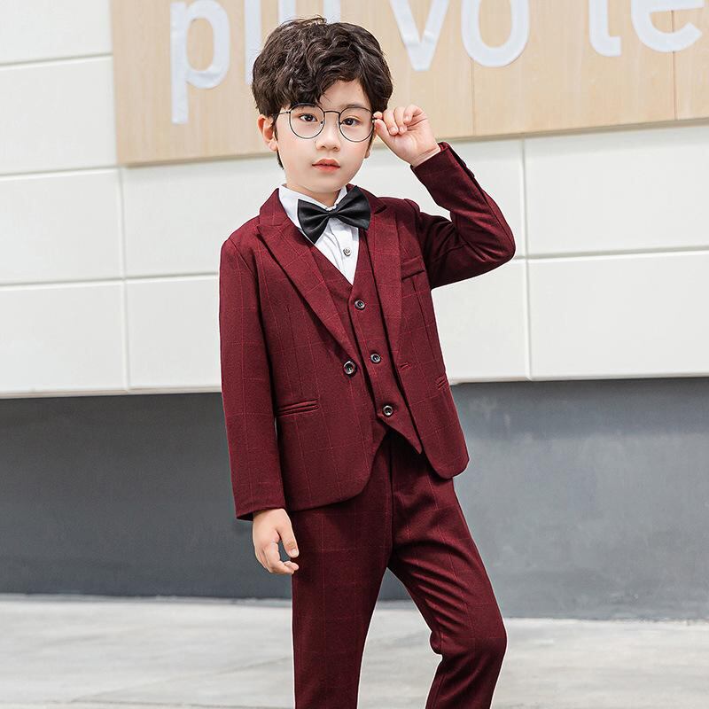 子供用フォーマルスーツ 男の子用 パンツスーツ 春秋 格子柄 発表会 演奏会 結婚式 卒園式 入学式 長袖 ジャケット 長ズボン ベスト 3点セット 4点セット ブルー グレー パープル 80 90 100 110 120 130 140 150 160