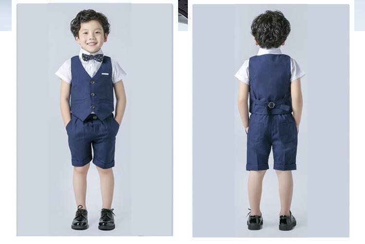 子供用フォーマルウェア 男の子 半袖シャツ ベスト 短パン 3点セット 発表会 結婚式 パーティー おしゃれ 蝶ネクタイ付き 赤 紺 90 100 110 120 130 140 150 160 170