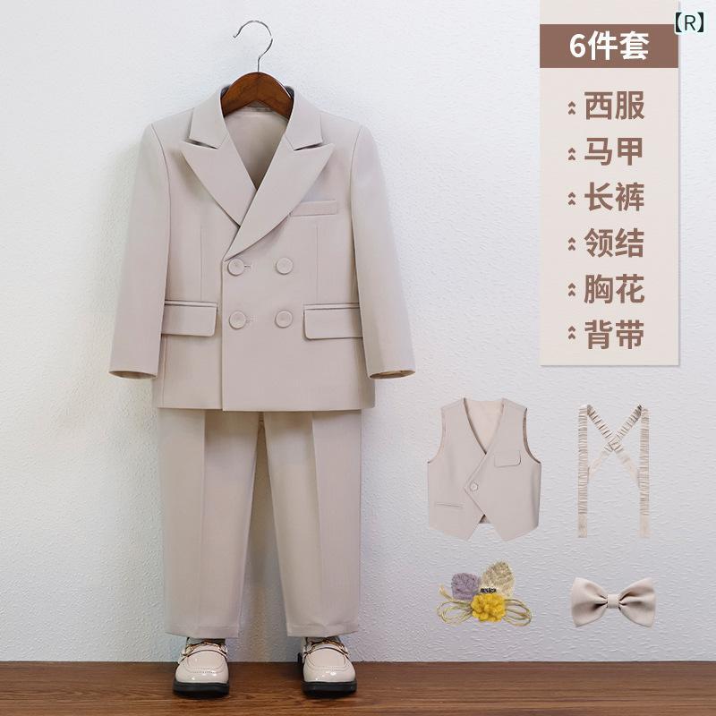 子供用フォーマルスーツ 春夏 結婚式 発表会 男の子 スーツ 5点セット:ベスト 長ズボン ブローチ 蝶ネクタイ サスペンダー 子供スーツ フォーマルウェア 子供服 80cm 90cm 100cm 110cm 120cm 130cm 140cm 150c