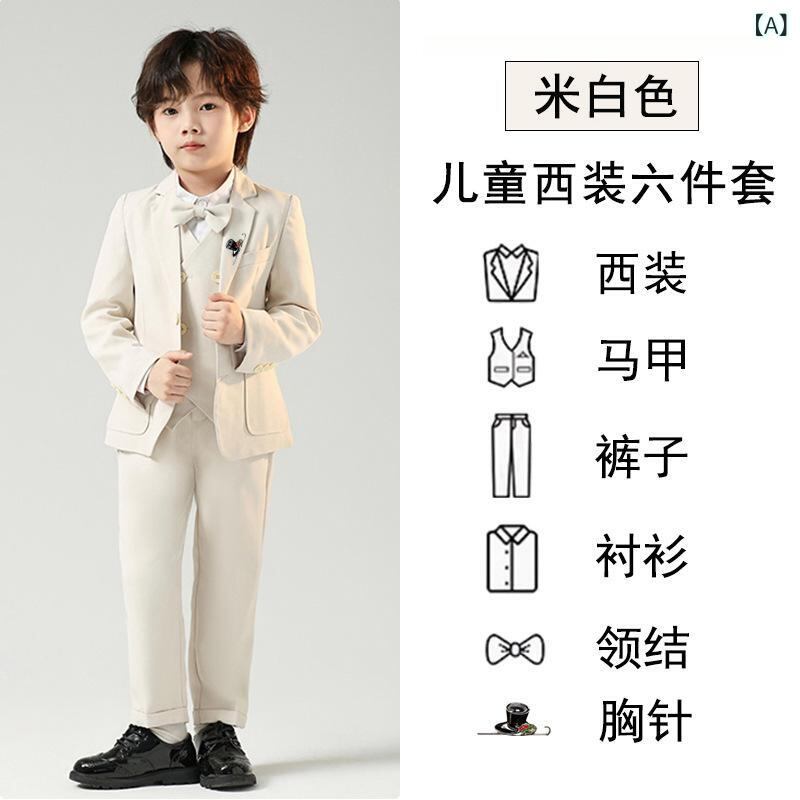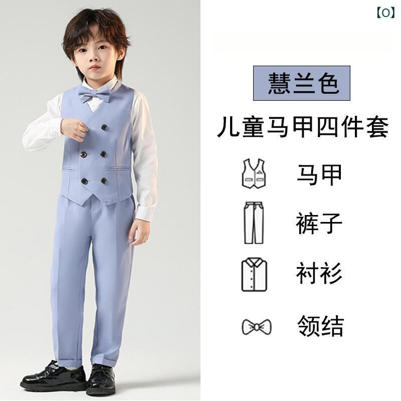 子供用フォーマルスーツ 男の子 スーツ ジャケット ベスト パンツ 長袖シャツ 蝶ネクタイ 帽子 ブローチ付き 発表会 演奏会 結婚式 卒園式 入学式 七五三 お呼ばれ 8歳以上 140cm以上 ポリエステル 無地 秋 冬