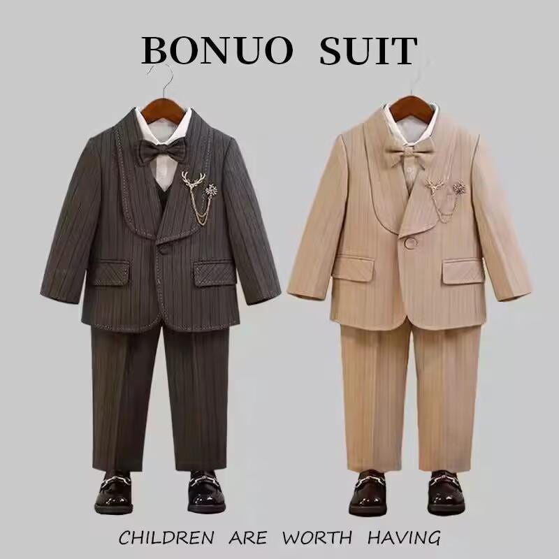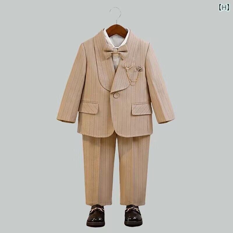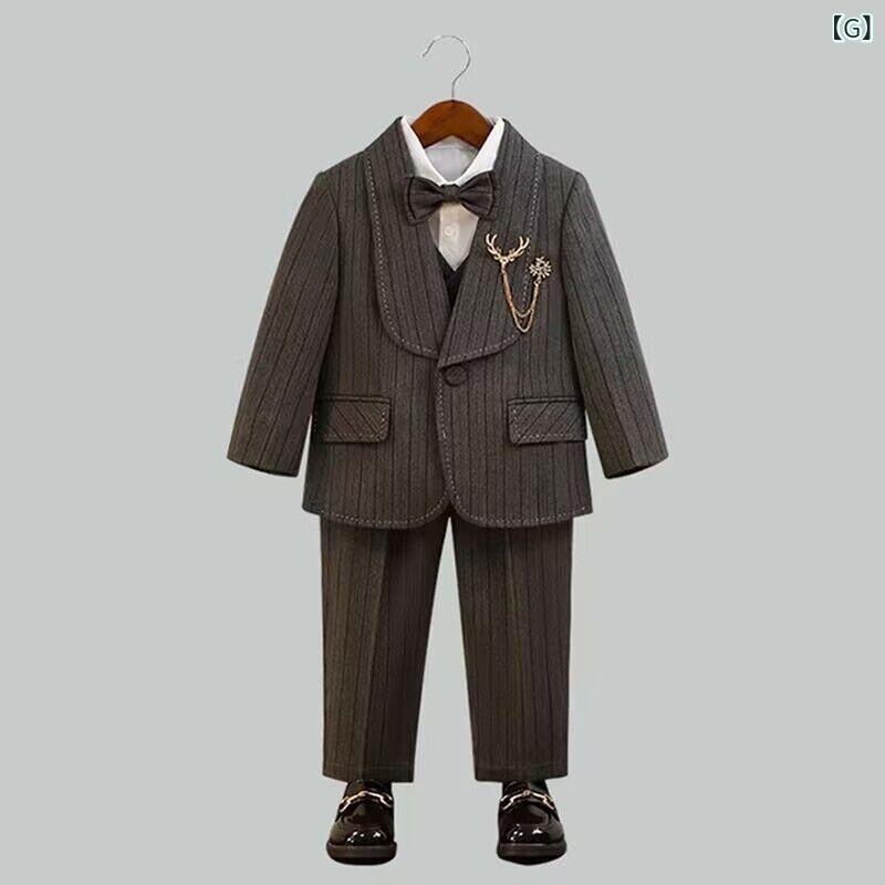 子供用 スーツ セットアップ イングリッシュスタイル 男の子 フォーマル 花童 発表会 演奏会 上下セット ジャケット パンツ ベスト シャツ付き 綿 厚手 秋冬