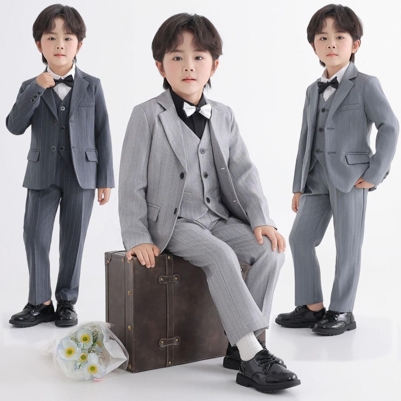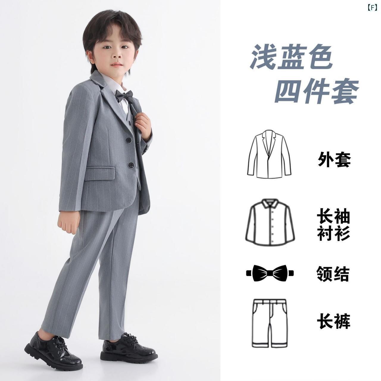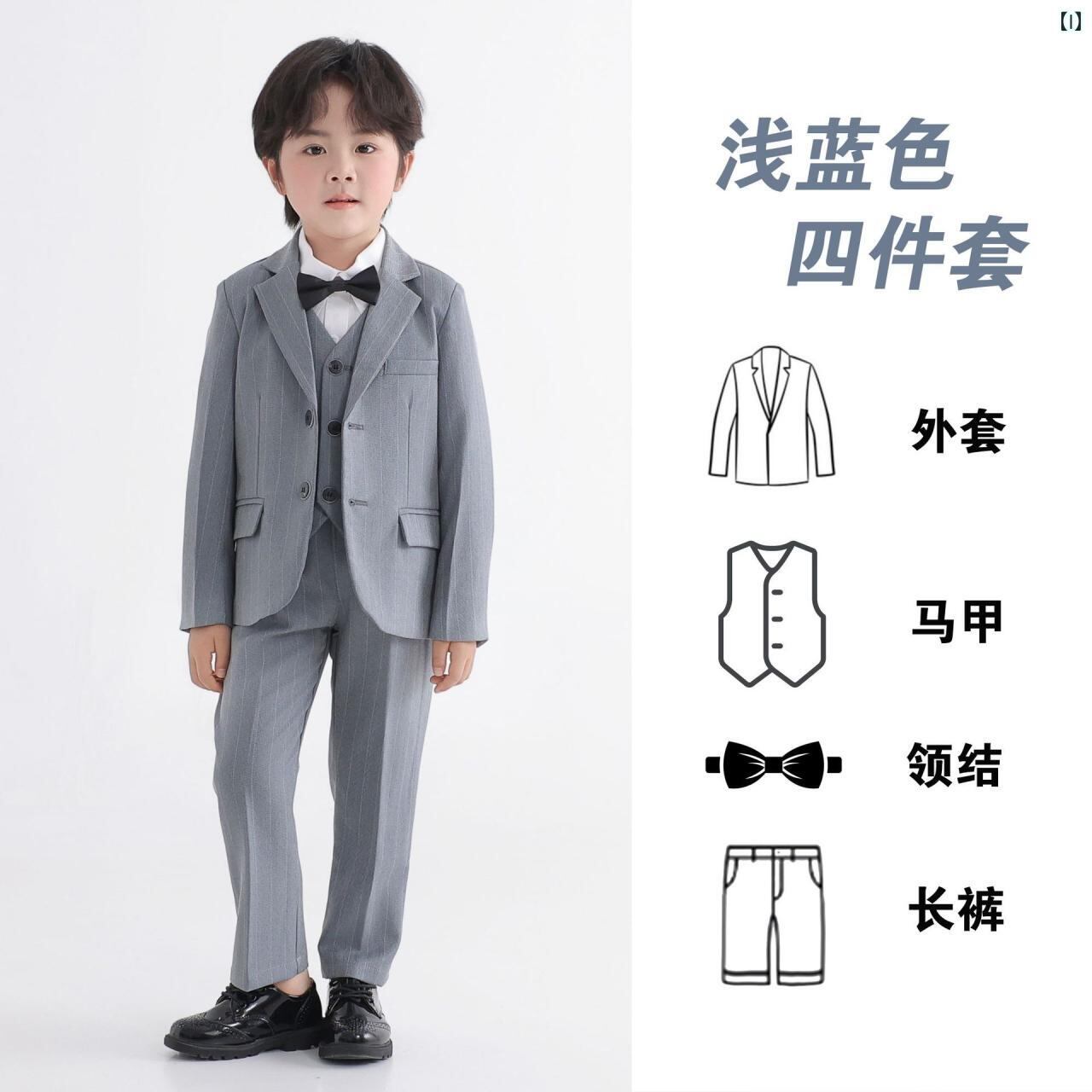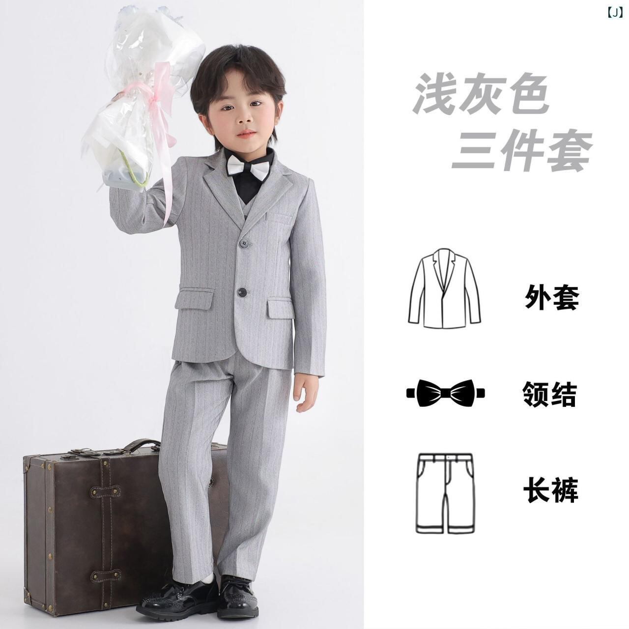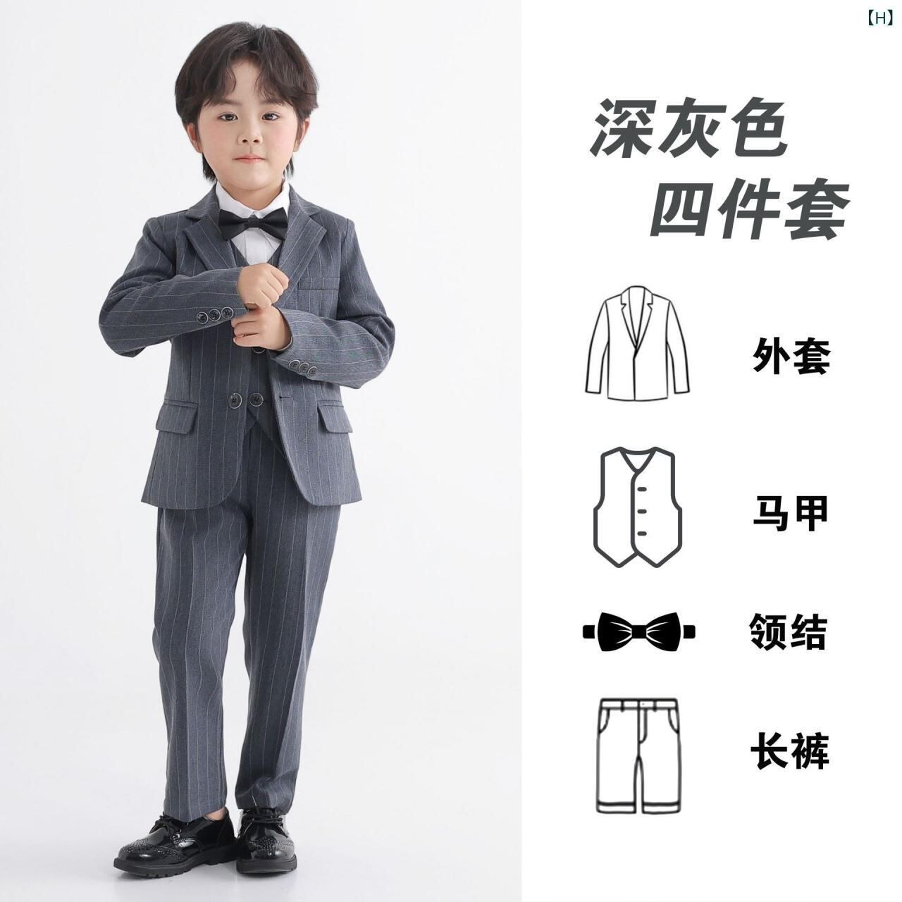 子供用スーツ フォーマル 男の子 春秋物 5点セット (ジャケット ベスト シャツ パンツ 蝶ネクタイ) 子供服 英国風 ピアノ 発表会 結婚式 演奏会 হালকা グレー