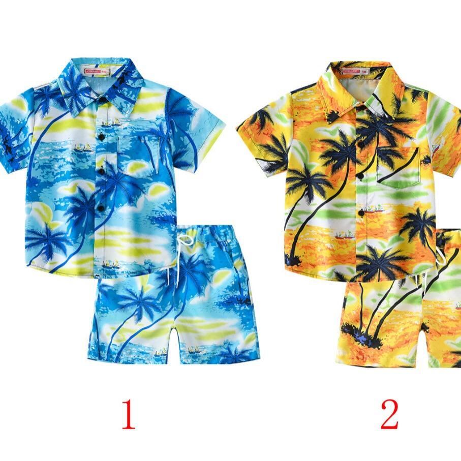 キッズ 男の子用 半袖短パン セットアップ 夏服 薄手 リゾート風 椰子の木柄 普段着