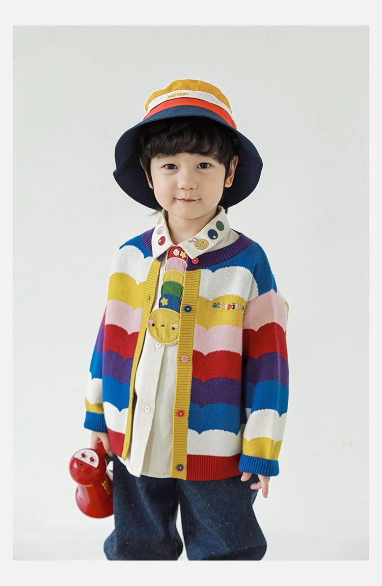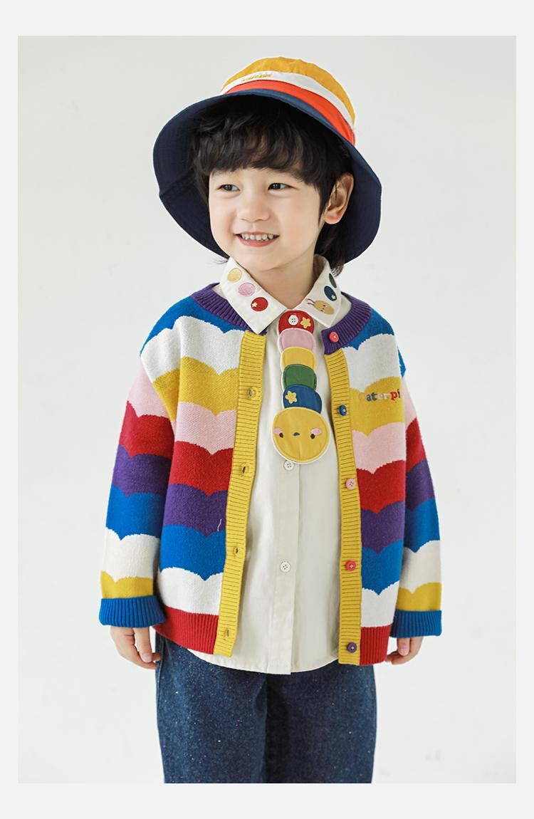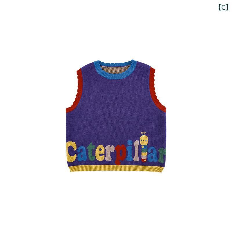 キッズ 男の子 ニット 長袖シャツ レインボーカラー セットアップ ノースリーブ ベスト ルーズ デニムパンツ 綿100% 秋