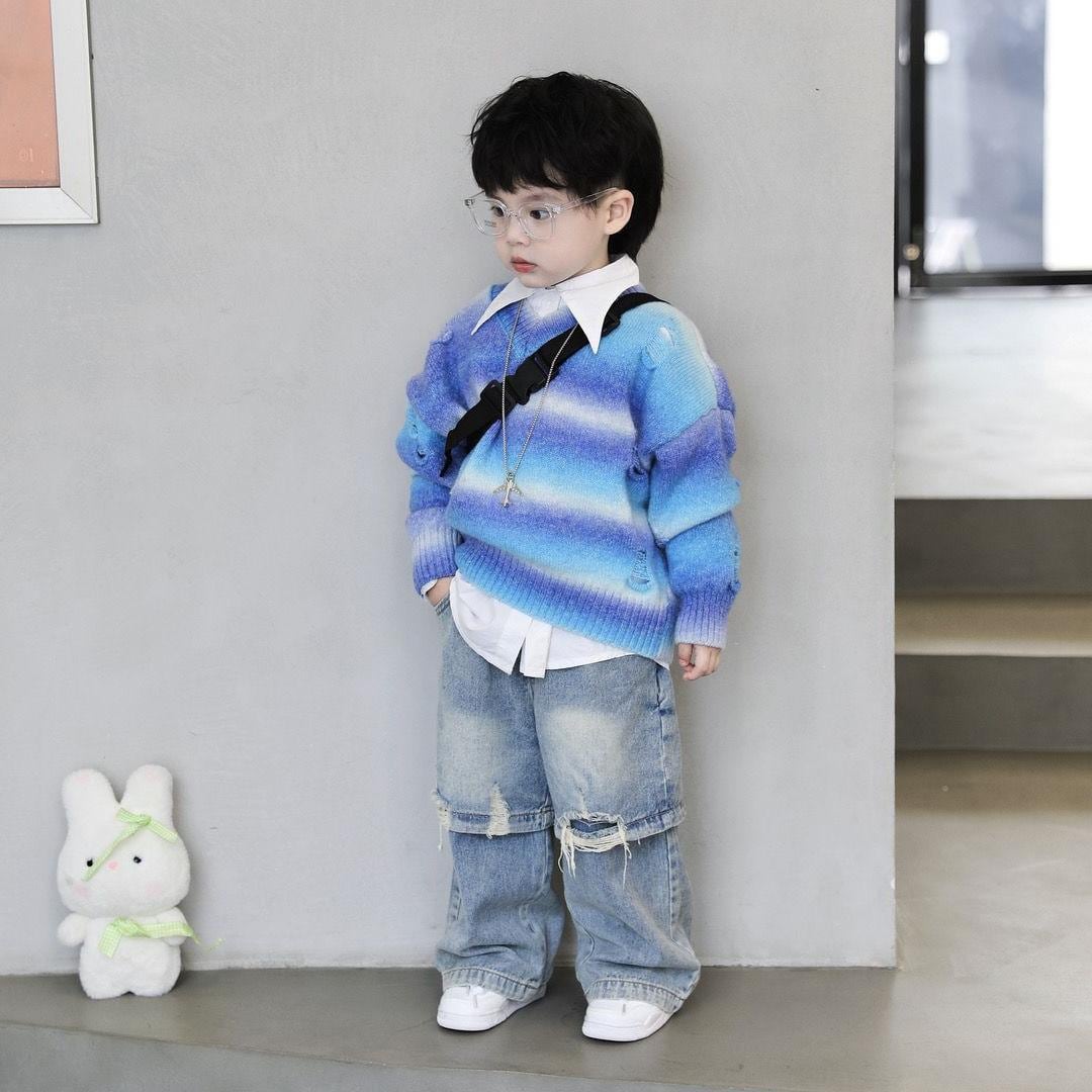 キッズ 男の子 ニット 長袖シャツ デニムパンツ 3点セット 子供服 上下セット 80 90 100 110 120 130 140 150cm かわいい 韓国風
