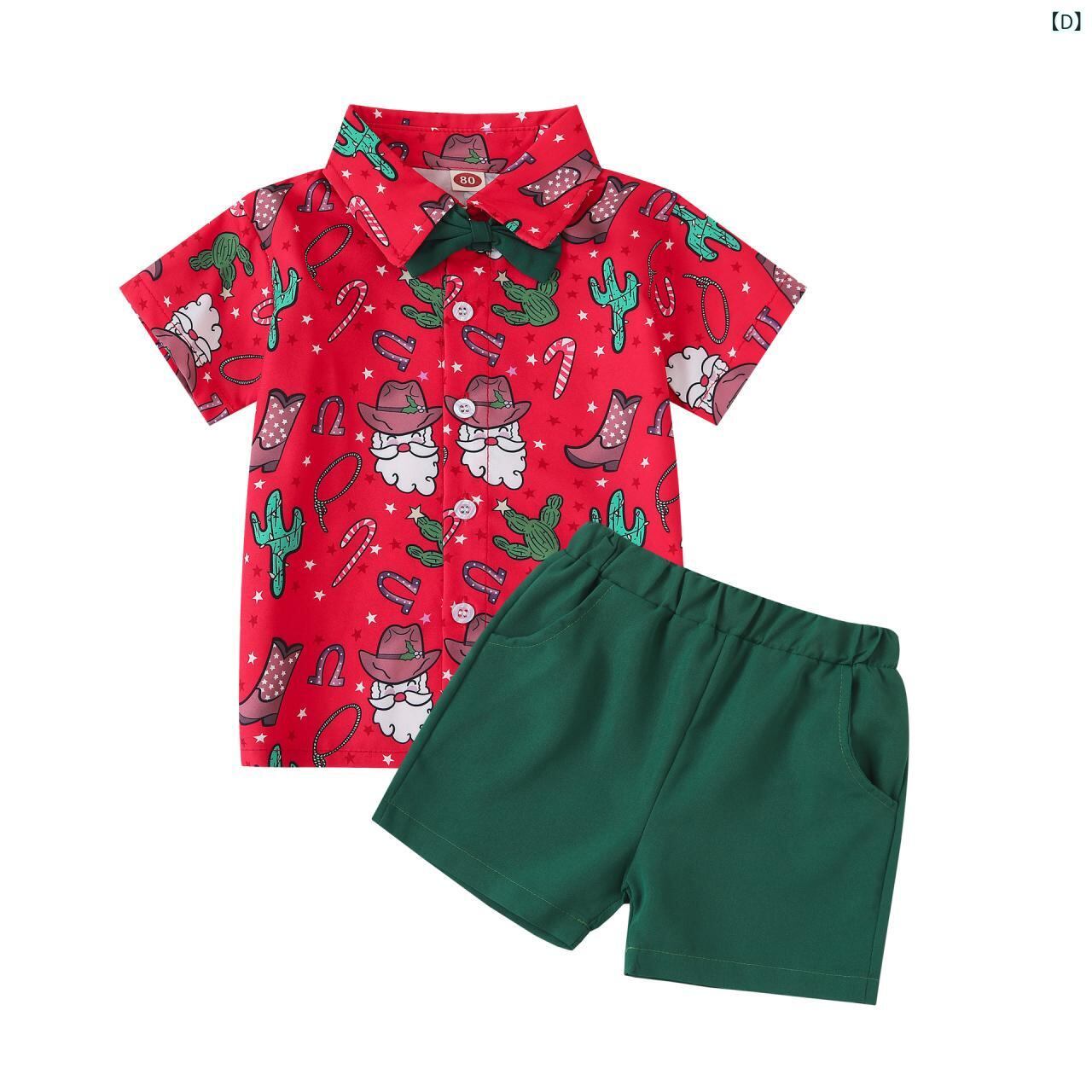 子供用シャツ パンツ 上下セット クリスマス サンタクロース コスチューム 短袖 半ズボン 2点 セットアップ 80 90 100 110 120 130