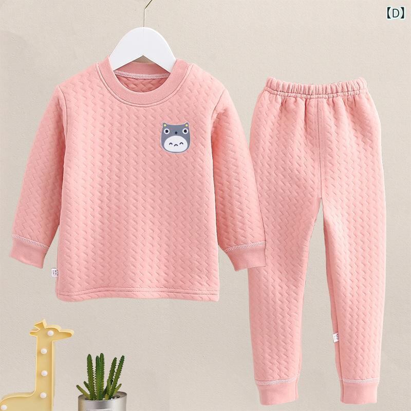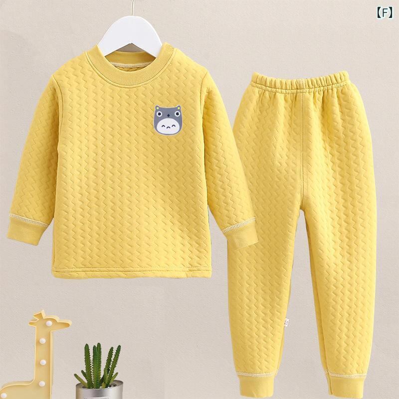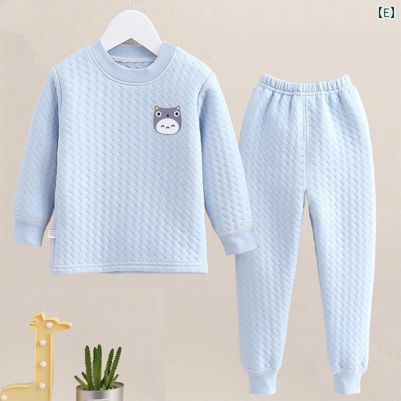 子供用インナー 上下セット 秋冬 三層構造 男女兼用 厚手 防寒 あったか 長袖 トップス 長ズボン パジャマ 部屋着 綿100% かわいい 猫 龍猫 ブルー イエロー ピンク系 80 90 100 110 120 130 140 150