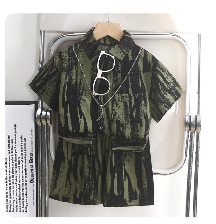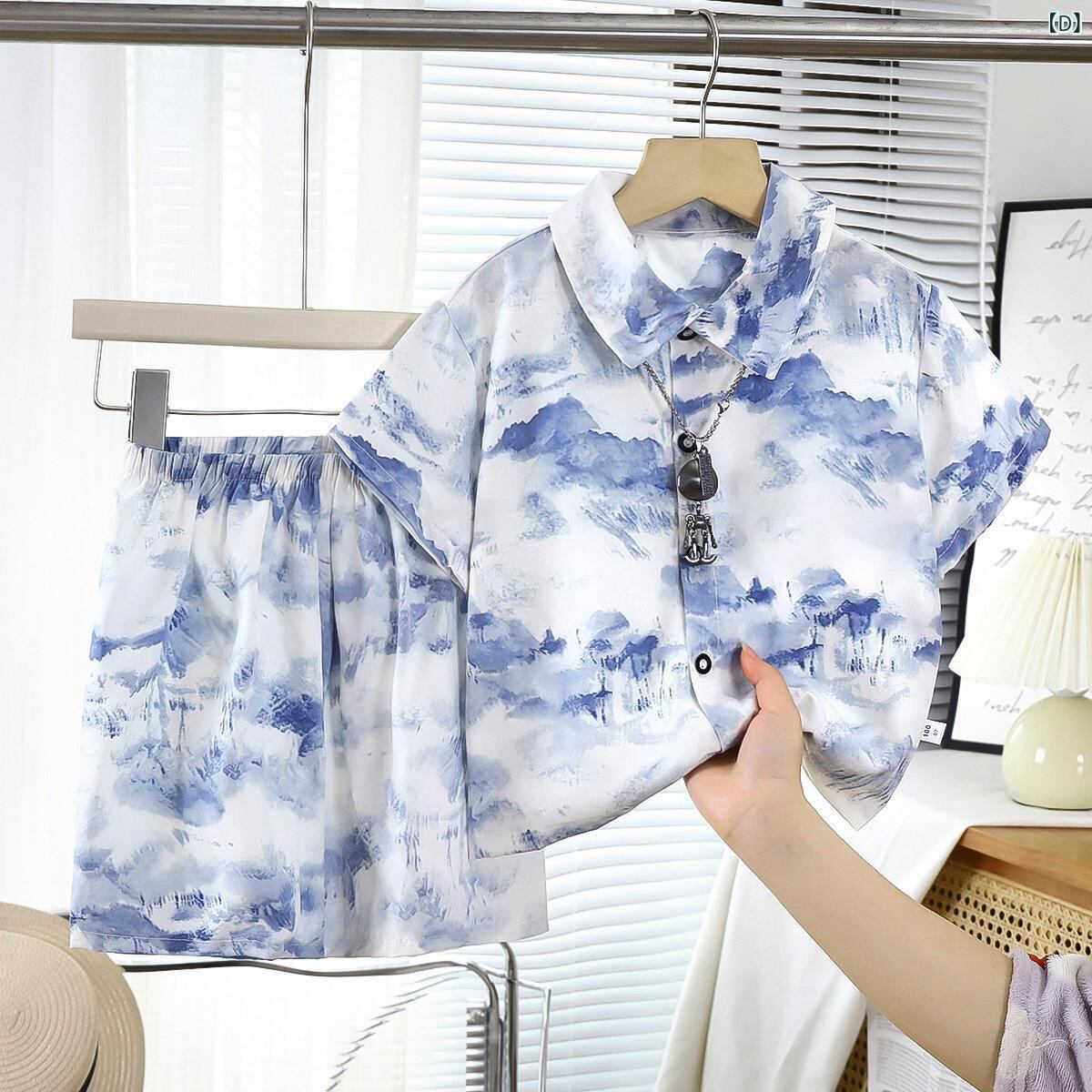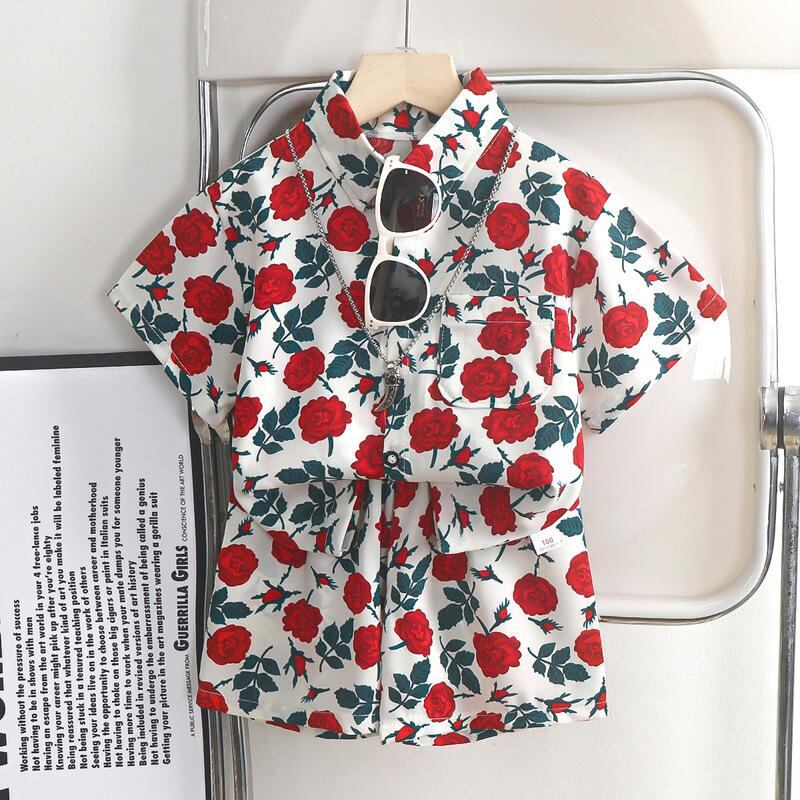 シャツ 男の子 半袖 ショートパンツ 上下セット 子供服 夏 薄手 港スタイル 花柄 100 110 120 130 140 150 160cm