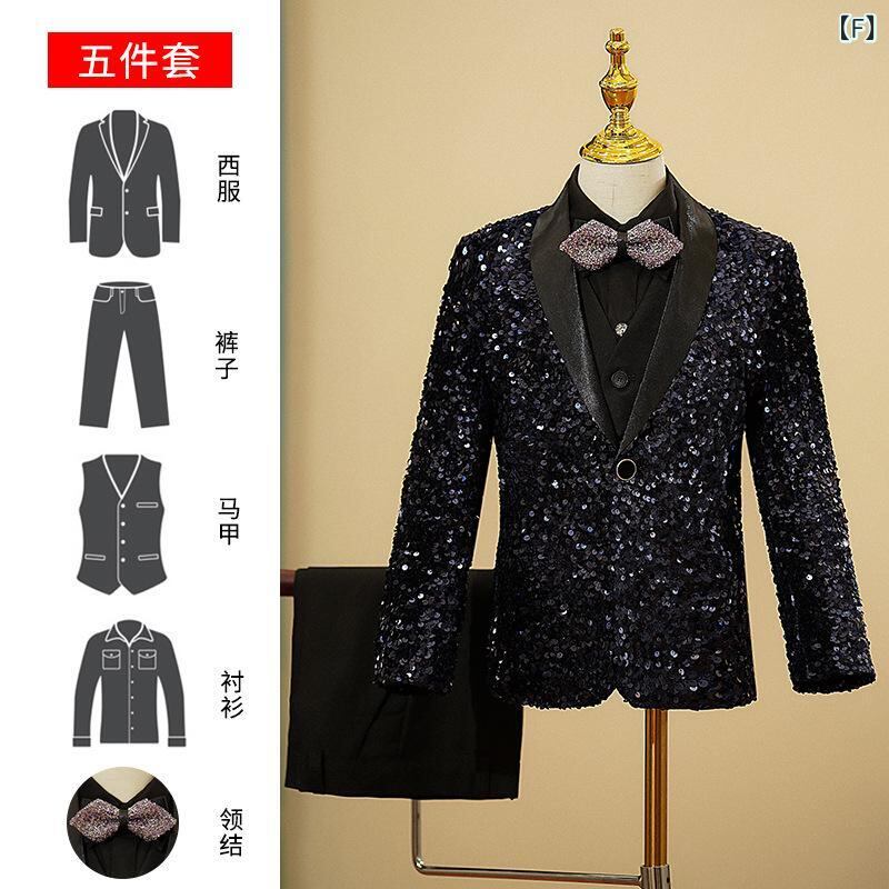 子供用フォーマルスーツ 男の子用タキシード 春夏秋冬 子供用スーツ 5点セット (ジャケット、ベスト、シャツ、ズボン、蝶ネクタイ) 発表会 演奏会 入学式 卒業式 結婚式 パーティー おしゃれ