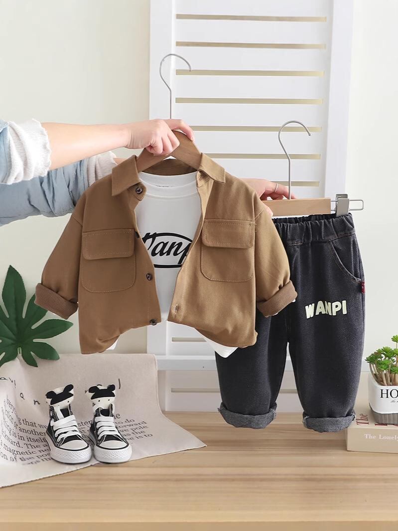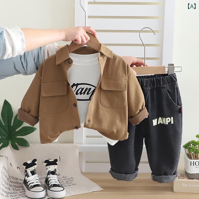 キッズ ベビー服 長袖シャツ パンツ セットアップ 男の子 春秋 3点セット 80 90 100 110 120cm カフェ ブラック グリーン 普段着 部屋着