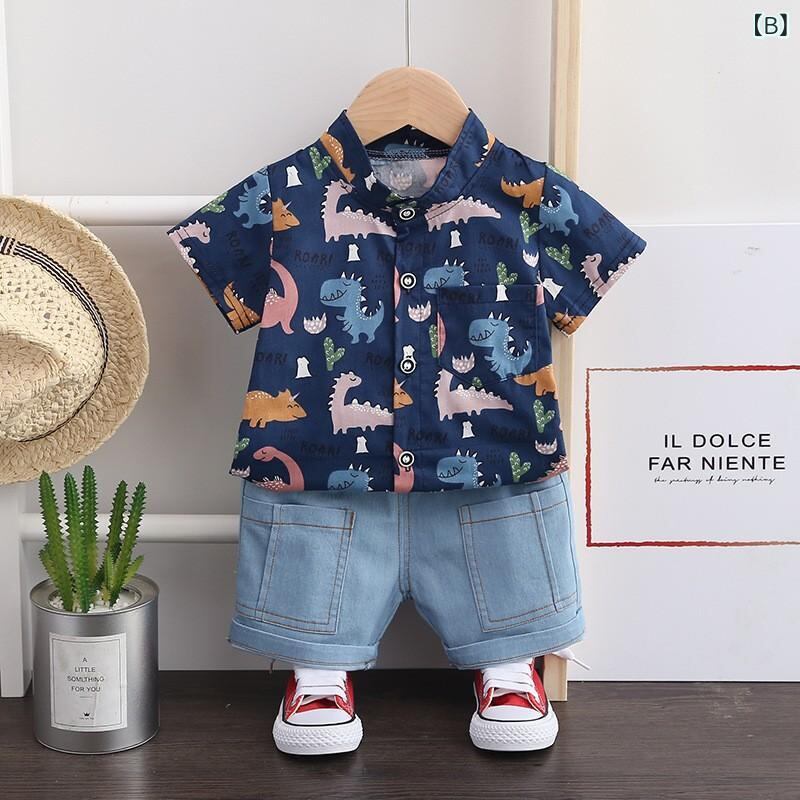 シャツ キッズ 男の子 半袖 短パン 上下セット 子供 夏服 恐竜柄 かわいい おしゃれ 80 90 100 110 綿100% カジュアル 普段着