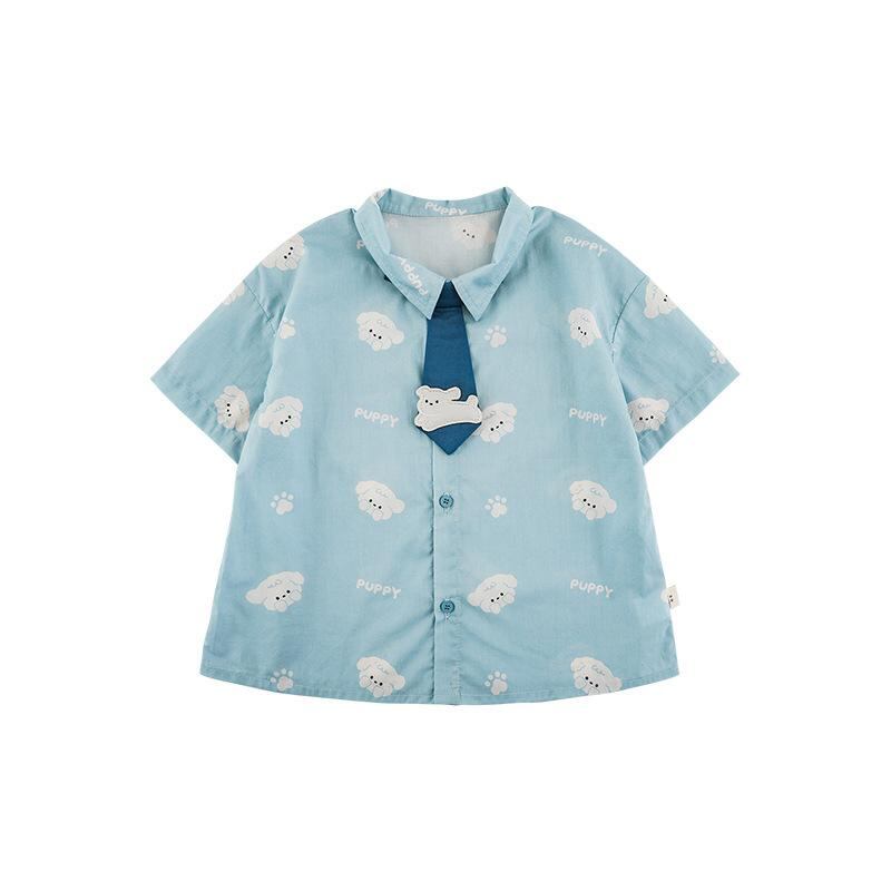 キッズ 男の子用 半袖シャツ ショートパンツ 上下セット 薄手 通園 普段使い コットン100% カートーン柄