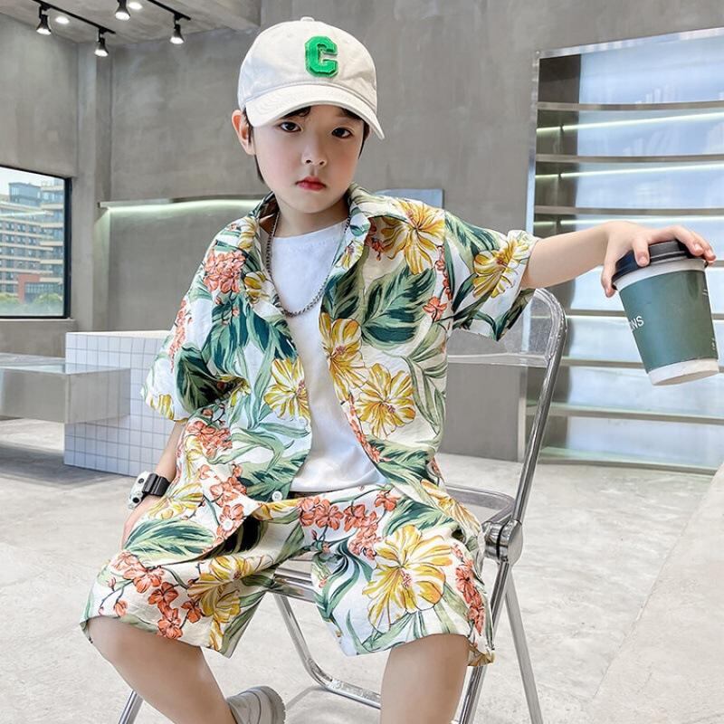 キッズ 男の子 アロハシャツ セットアップ ハワイアンシャツ ショートパンツ 上下セット リゾート ビーチ ウェア 子供服