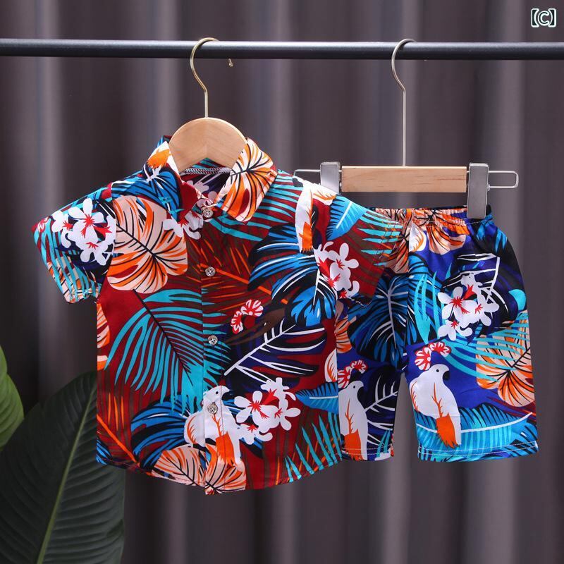 キッズ 半袖シャツ パンツ 上下2点セット 東南アジア風 プリント柄 コットン 薄手 男の子 ベビー 幼児 子供服 パジャマ 部屋着 かわいい カジュアル